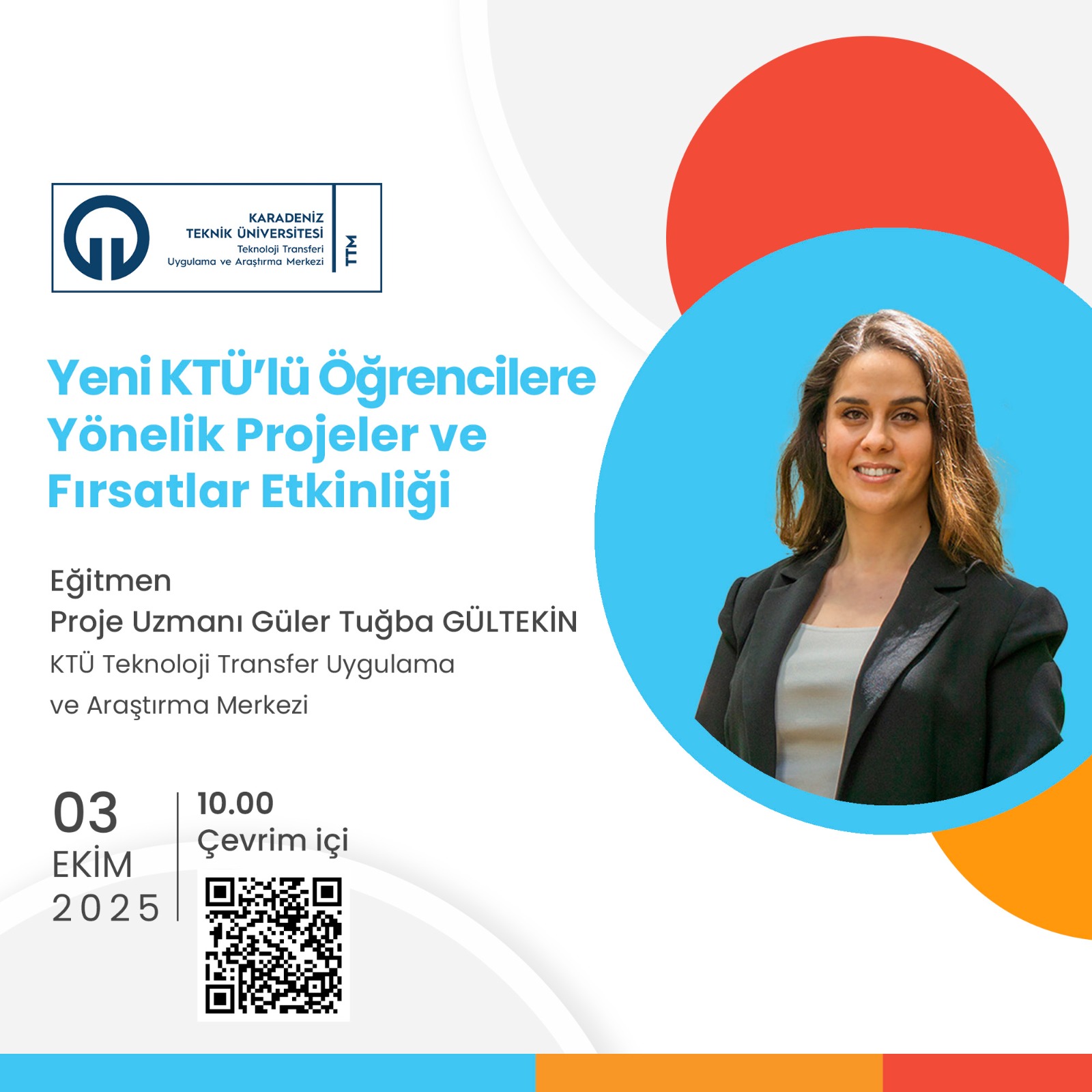 KTÜ Teknoloji Transferi Uygulama ve Araştırma Merkezi tarafından yeni öğrencilerimize yönelik “Projeler ve Fırsatlar Etkinliği” düzenlenecektir.