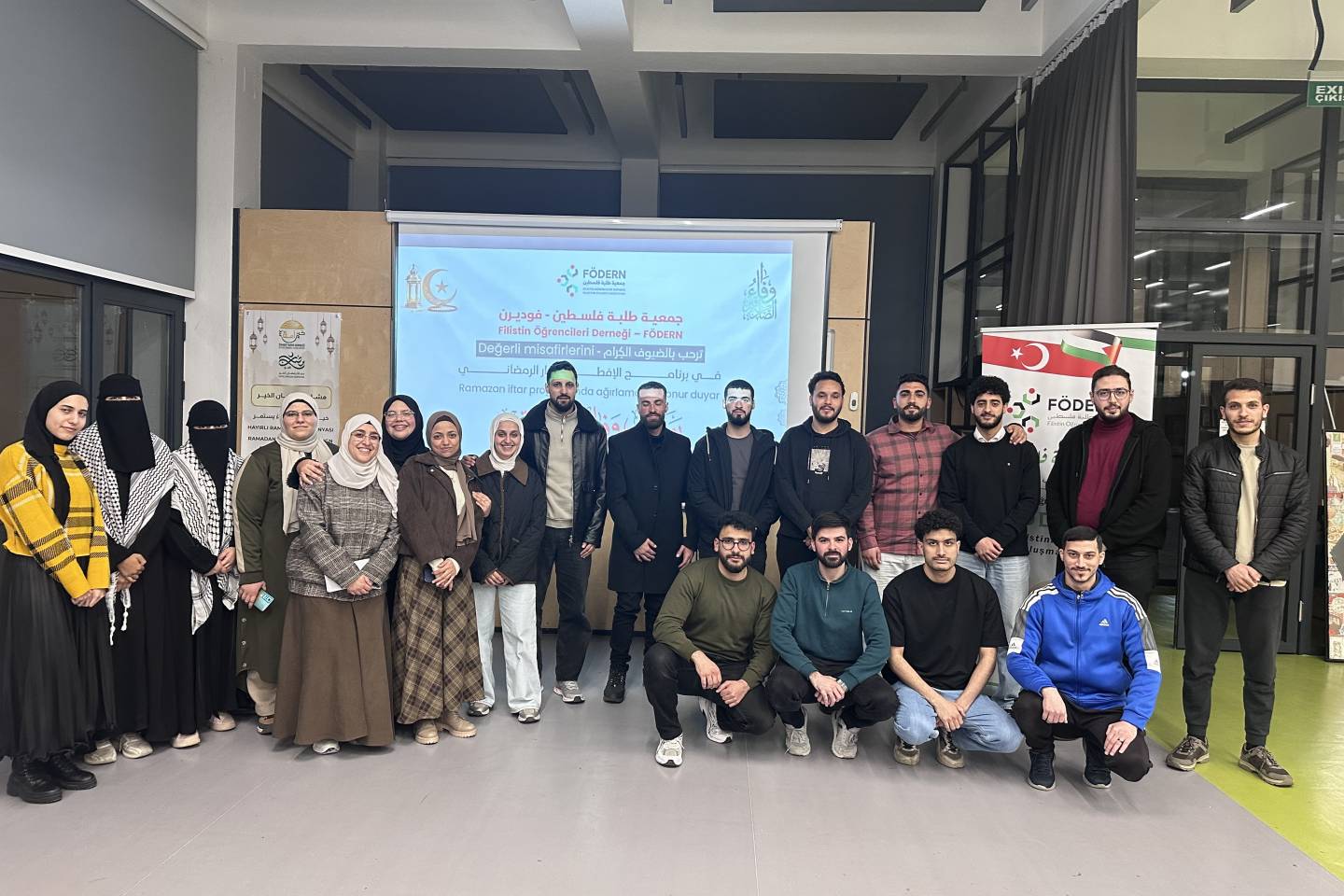 Trabzon Filistinli Öğrenciler Derneği (FÖDERN) ile üniversitemizde öğrenim gören Filistinli öğrencilerin iş birliğinde düzenlenen iftar programı, Dış İlişkiler Ofisi etkinlik salonunda gerçekleştirildi. Ramazan ayının manevi atmosferinde gerçekleşen program, farklı kültürlerden öğrencileri aynı sofrada buluşturarak birlik ve dayanışma duygusunu pekiştirdi.Yoğun katılımın olduğu programda öğrenciler, birlikte iftar yapmanın yanı sıra Filistin kültürüne özgü gelenekler hakkında da paylaşımlarda bulunarak, çeşitli ödüller oyunlar oynadı. Samimi bir ortamda gerçekleşen etkinlik, kültürlerarası etkileşimi güçlendirirken öğrenciler arasında yeni dostlukların kurulmasına katkı sağladı. Etkinlik, toplu hatıra fotoğrafı çekimiyle sona erdi.