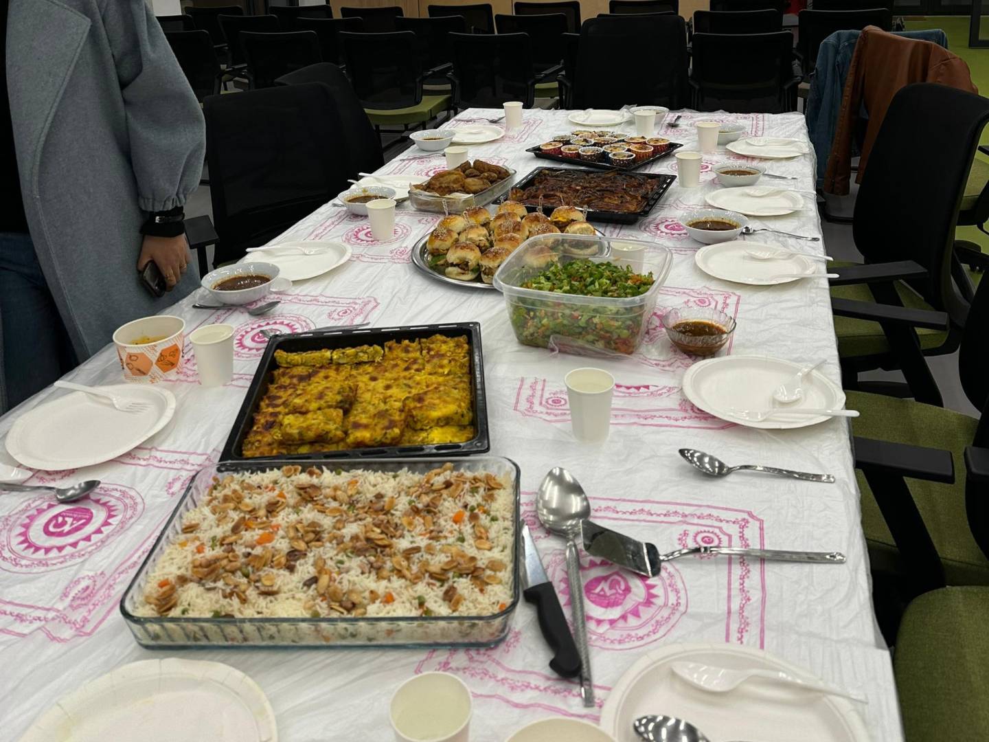 Üniversitemizde öğrenim gören Libyalı öğrenciler tarafından düzenlenen iftar programı, Dış İlişkiler Ofisi etkinlik salonunda gerçekleştirildi. Ramazan ayının manevi atmosferinde düzenlenen program, öğrencileri aynı sofrada buluşturarak birlik ve dayanışma duygusunu pekiştirdi. Öğrenciler, birlikte iftar yapmanın yanı sıra Libya kültürüne özgü gelenekler hakkında da paylaşımlarda bulundu. Samimi bir ortamda gerçekleşen iftar yemeğinin ardından sinema filmi gösterimiyle devam eden etkinlik, toplu hatıra fotoğrafı çekimiyle sona erdi.