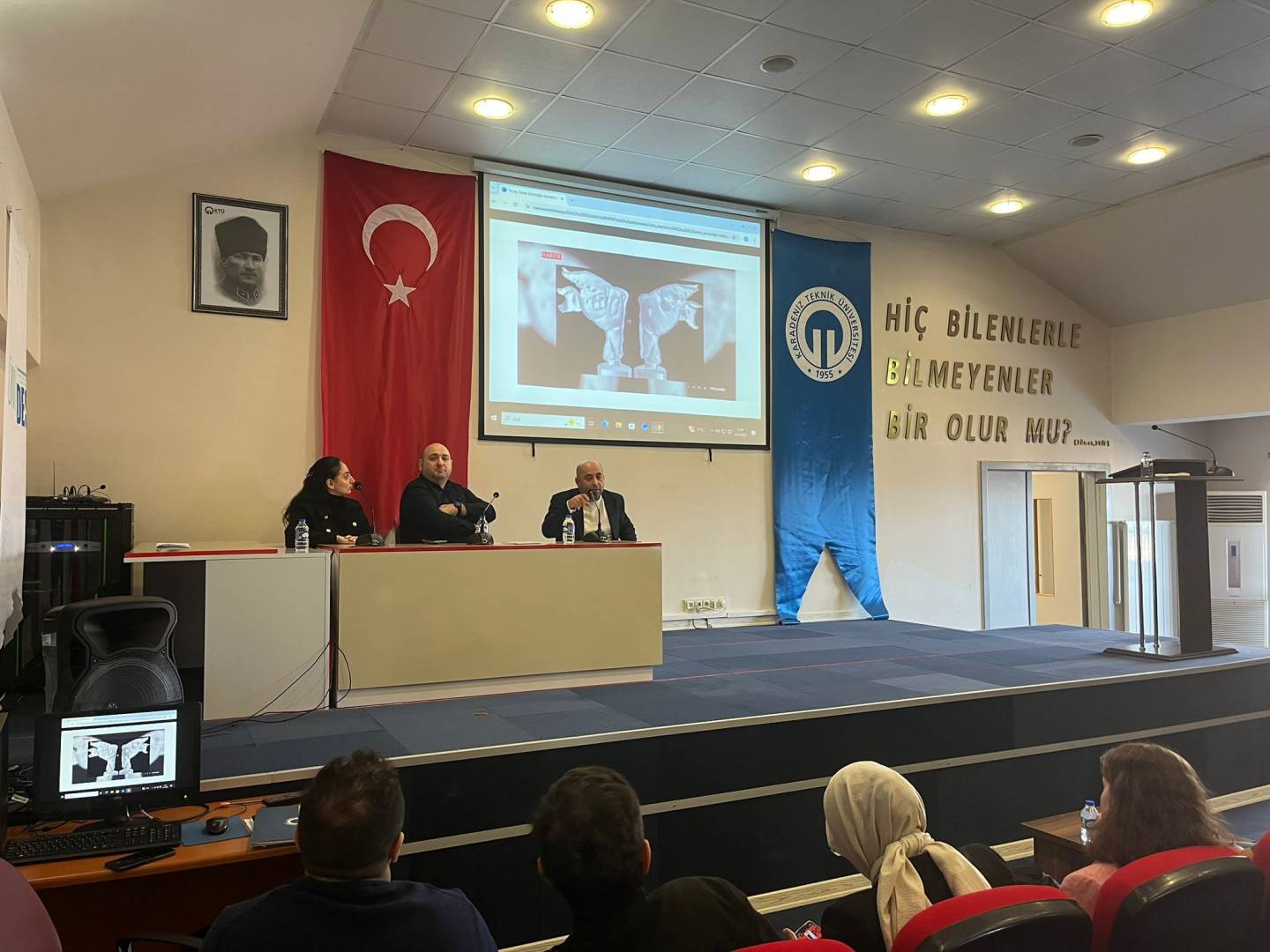 Farklı disiplinlerden değerli hocaların da görüşlerini paylaştığı etkinlikte, Dr. Öğr. Üyesi BİNGÖL gerçekleştirdiği sunumla yapay zekanın teknik gelişiminden toplumsal yansımalarına kadar geniş bir perspektifte değerlendirmelerde bulundu. Öğrencilerin ve akademisyenlerin yoğun ilgi gösterdiği panel, bilgi alışverişi ve soru-cevap bölümleriyle interaktif bir şekilde tamamlandı.