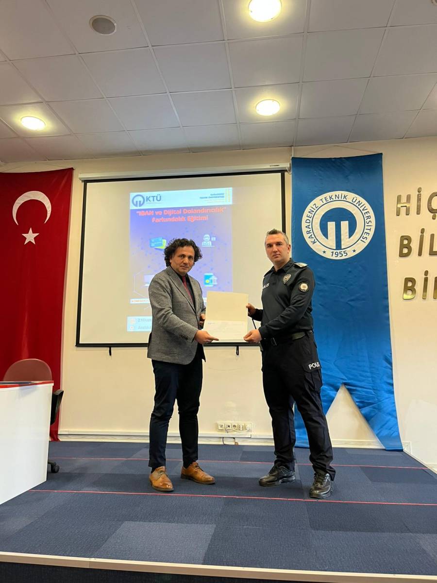 Eğitim, İlçe Emniyet Teşkilatı personelleri Polis Memuru Ozan URALLAR, Komiser Yücel İSLAMOĞLU ve Komiser Muhammet Ülkü OKUTUR tarafından verildi. Program kapsamında; IBAN dolandırıcılığı, oltalama (phishing) saldırıları ve sosyal mühendislik yöntemleri detaylı şekilde ele alınarak, katılımcılara bu tür tehditlere karşı alınabilecek önlemler hakkında kapsamlı bilgiler aktarıldı.