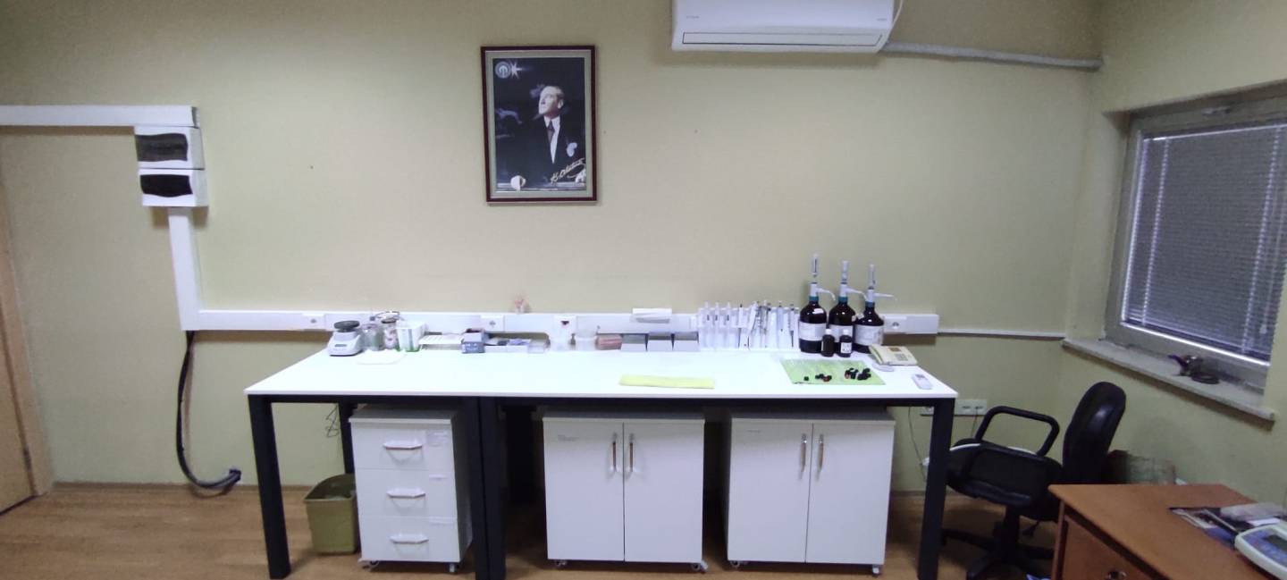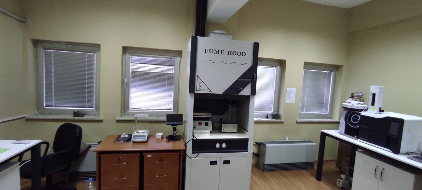 Güvenli Çalışma Ortamı: Kimyasal çalışmaların güvenle yürütülmesi için tam donanımlı çeker ocak (Fume Hood) ve saklama üniteleri.