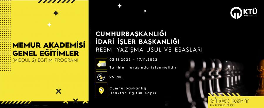 KTÜ Memur Akademisi Genel Eğitimler kapsamında tüm personellerimize yönelik "Resmi Yazışma Usul ve Esasları" eğitimi verilecektir.