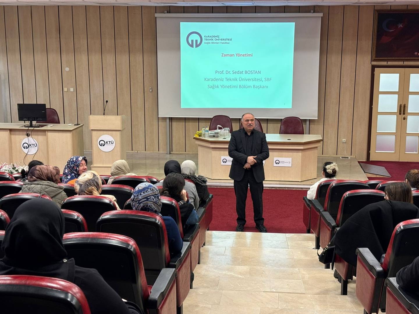 Bu kapsamda video kayıtlı eğitimler KTÜ Fen Fakültesi Nazım Terzioğlu Amfisinde katılımcılar tarafından toplu şekilde takip edilmiştir.
