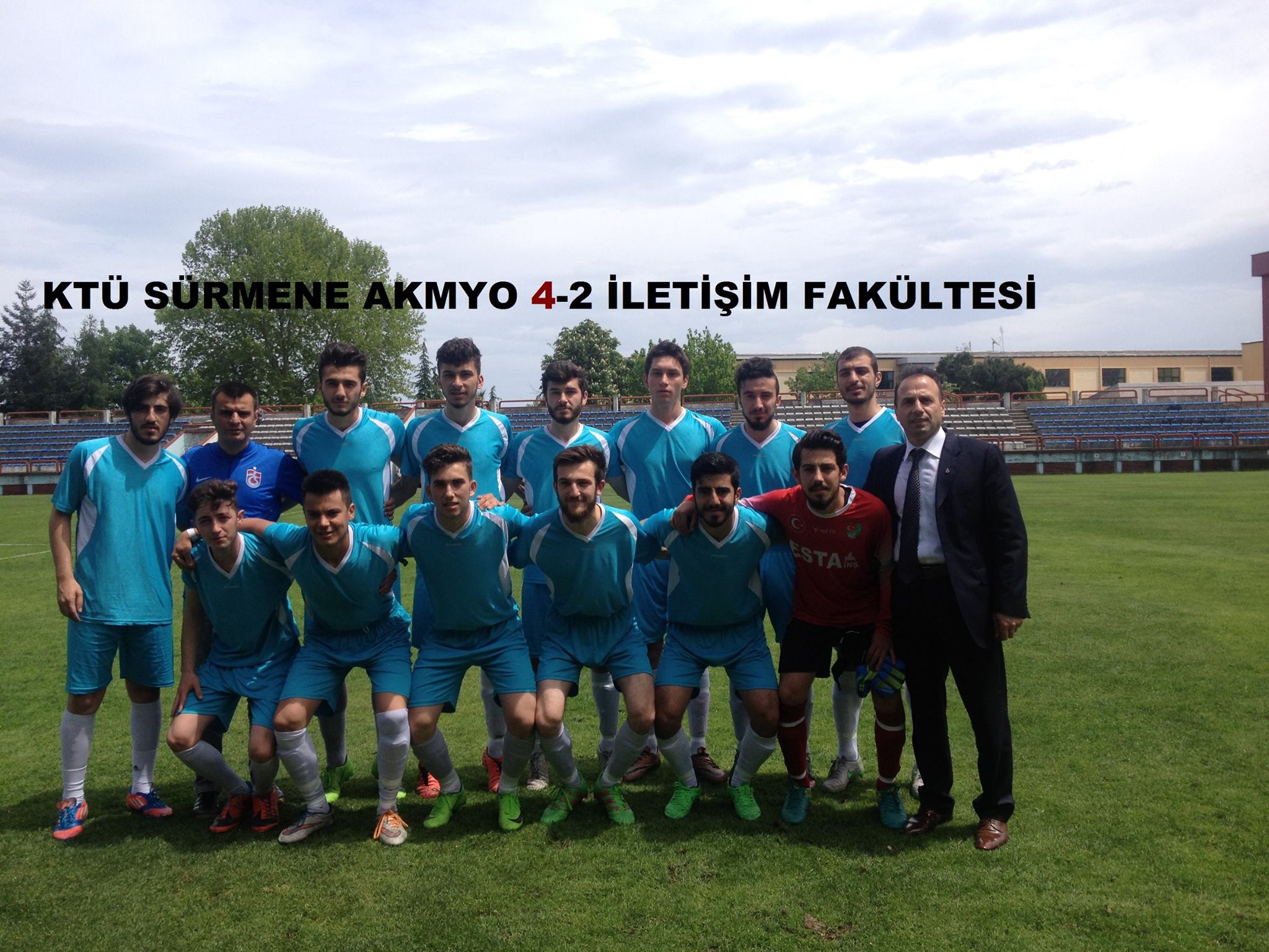 KTÜ 37'nci Erkek Öğrenci Spor Şöleni etkinliklerinde, KTÜ Sürmene AKMYO- KTÜ İletişim Fakültesini 4-2 yenerek spor şölenin de finale çıktı. Kıran kırana geçen maçta MYO takımımız ilk dakikalarda 1-0 yenik duruma düşmesine rağmen azimli ve başarılı futbolu sayesinde rakip takımı 4-2 yenmeyi başardı. Teknik hocamız Öğr. Gör. Umut BAYRAKTAR hocamızın başarılı taktiklerine, genç futbolcuların azim ve kararlılıkla cevap vermeleri başarıyı getirdi. Heyecanlı maçı tribünden izleyen MYO Müdürümüz Doç. Dr. Hamdullah ÇUVALCI, başta futbol teknik sorumlumuz Öğr. Gör. Umut BAYRAKTAR ve bütün futbolcularımızı tebrik ederek başarılarının devamını diledi. Bizler de kendilerini tebrik ederek öğrenim hayatlarında ve bütün sosyal etkinliklerinde başarılar diliyoruz.