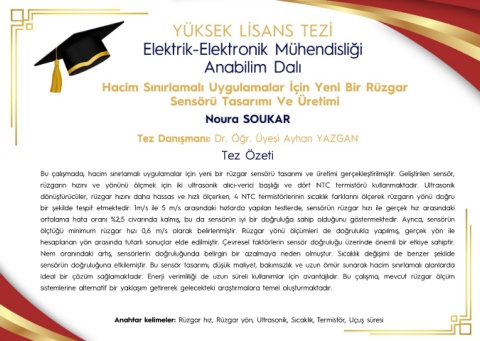 Bu çalışmada, hacim sınırlamalı uygulamalar için yeni bir rüzgar sensörü tasarımı ve üretimi gerçekleştirilmiştir. Geliştirilen sensör,