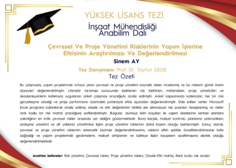 Anahtar kelimeler: Risk yönetimi; Çevresel riskler, Proje yönetimi riskleri, Olasılık–Etki matrisi, Renk kodlu risk analizi