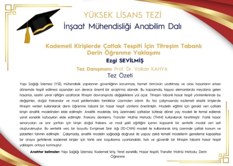 Anahtar kelimeler: Yapı Sağlığı İzlemesi; Kademeli kiriş; Yerel esneklik; Hasar tespiti; Transfer Matrisi Metodu; Derin