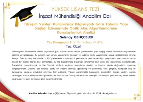Anahtar kelimeler: Yapı sağlığı izleme, Bilgisayarlı görü, Modal analiz, Optik akış algoritması