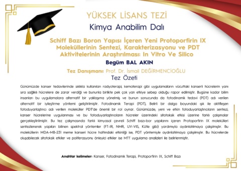 Anahtar kelimeler: Kanser, Fotodinamik Terapi, Protoporfirin IX, Schiff Bazı