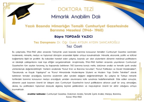 Bu çalışmada, 1946-1960 yılları arasında Türkiye’de yazılı basında barınma konusunun temsilleri Cumhuriyet Gazetesi üzerinden