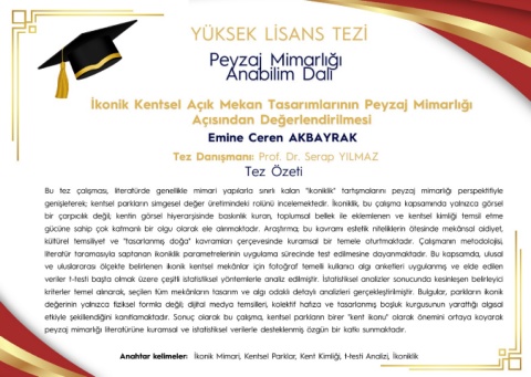 Bu tez çalışması, literatürde genellikle mimari yapılarla sınırlı kalan "ikoniklik" tartışmalarını peyzaj mimarlığı perspektifiyle