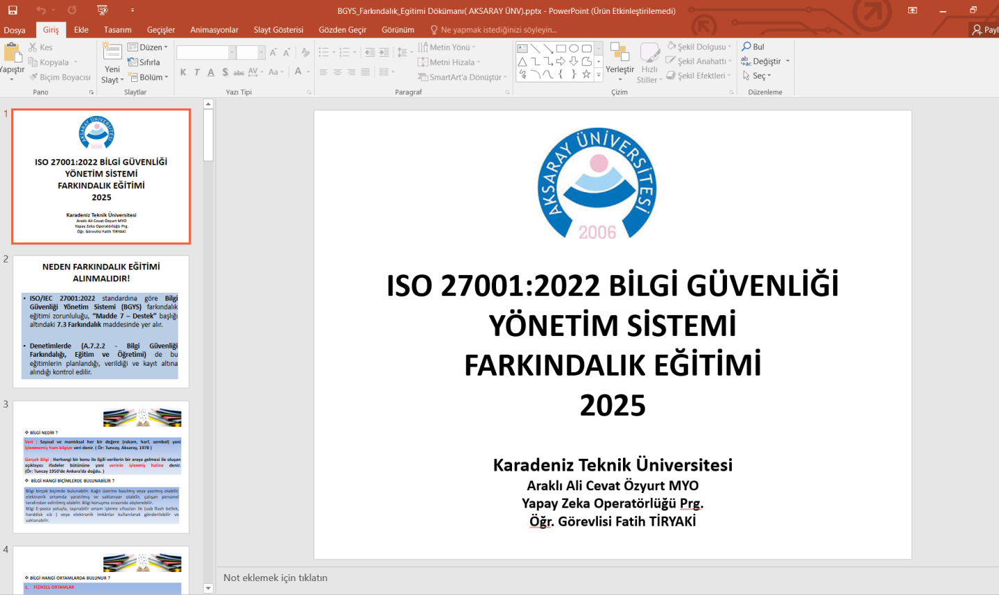 Aksaray Üniversitesine Çevrim içi ISO 27001 BGYS Farkındalık Eğitimi Verildi