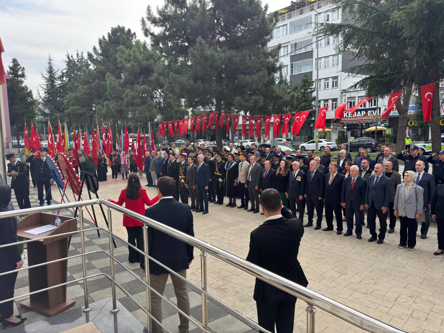 29 Ekim Cumhuriyet Bayramı münasebetiyle Meslek Yüksekokul Müdürümüz Prof. Dr. Özcan ÖZYURT, Araklı kaymakamlığınca düzenlenen Cumhuriyet Bayramı çelenk sunma törenine katıldı. Araklı kaymakamı Sayın Mehmet Ali UZUN'un önderliğinde ve ilçe protokol üyelerinin katılımı ile düzenlenen tören saygı duruşu ve istiklal marşının okunmasıyla başlanıp çelenk sunumu ile tamamlandı.