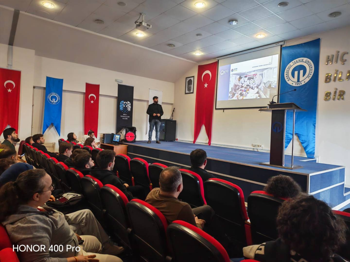 Eğitimde, sürdürülebilir çevre bilincinin artırılması, atıkların kaynağında ayrıştırılması, geri dönüşüm süreçleri ve Sıfır Atık Projesi’nin önemi hakkında kapsamlı bilgiler aktarıldı. Üniversitemizce yürütülen sıfır atık uygulamalarına dair örnekler paylaşılırken, dikkat edilmesi gereken noktalar da vurgulandı.