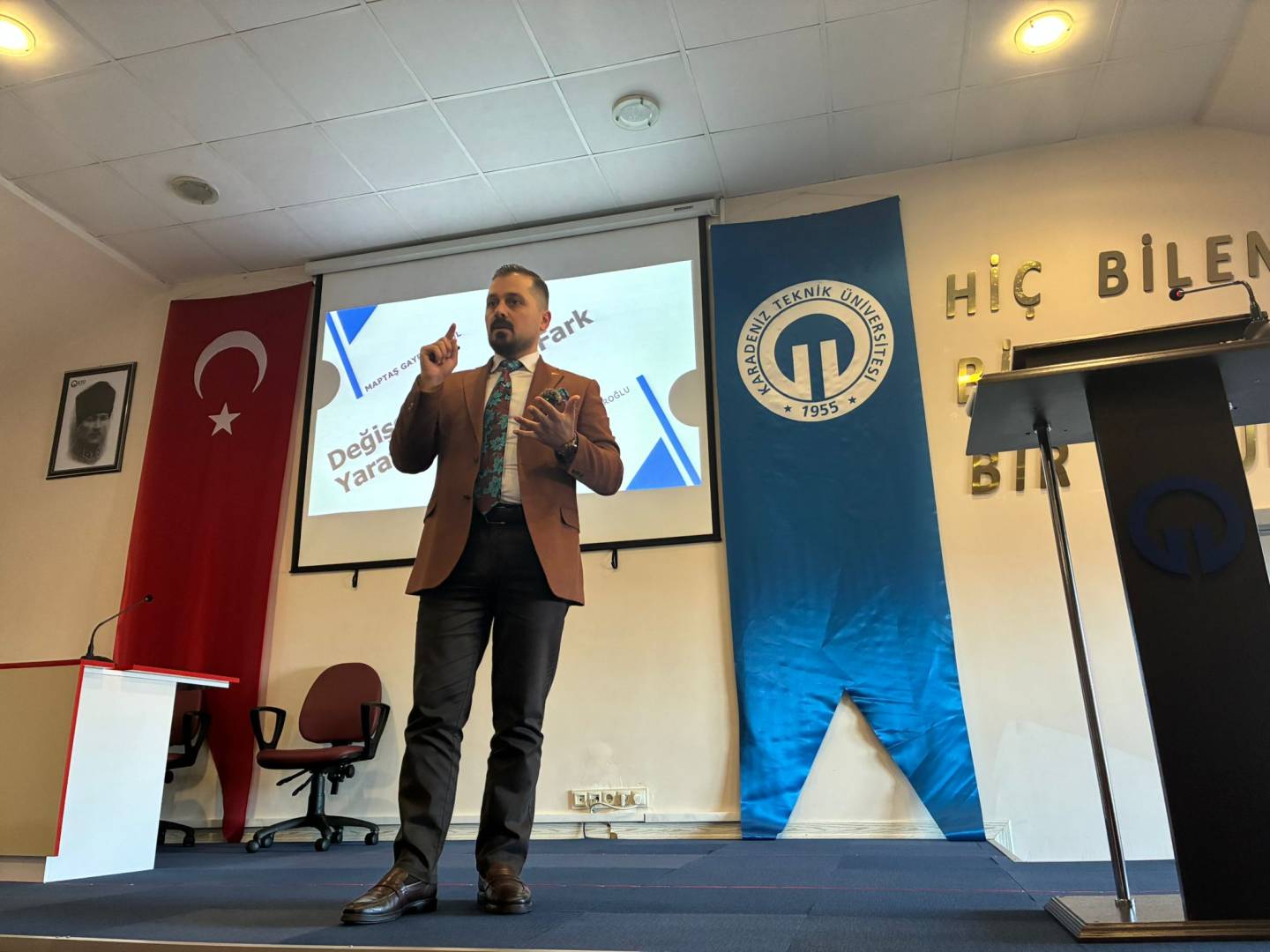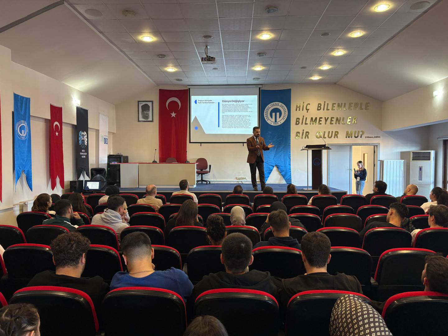 Meslek Yüksekokulumuzda 30.10.2025 tarihinde Maptaş Gayrimenkul Kurucusu Rahman BEKİROĞLU ve bpluses Sosyal Medya ve Dijital İçerik Ajansı Kurucusu Betül KOCA GEDİKLİ'nin konuşmacı oldukları Değişen Dünyada Fark Yaratan Gençler Konferansı gerçekleştirildi.
