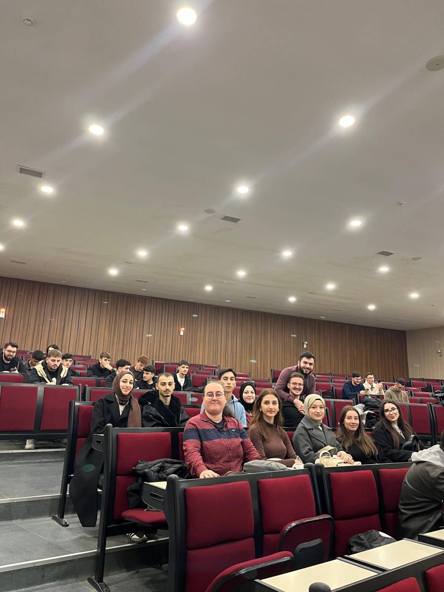 03.12.2025 tarihinde Yönetim ve Organizasyon Bölümü Lojistik Programı 1. Sınıf öğrencileri, Bölüm Başkanı Öğr. Gör. Dr. Damla EKER ile birlikte İİBF İşletme Bölümü bünyesinde, Doç. Dr. Semra BANK’ın organizesi ile gerçekleşen Sermaye Piyasasında Kariyer ve Geleceğin İş Fırsatları seminerine konuk dinleyici olarak katıldı.