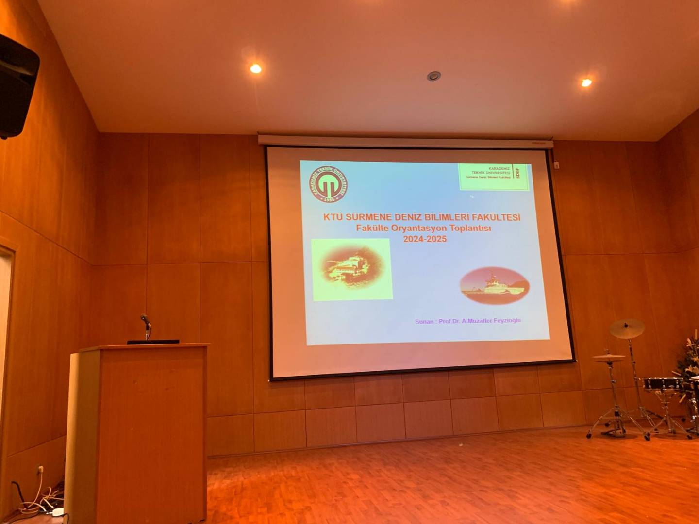 2024-2025 Güz Yarıyılı itibarıyla fakültemize kayıt olan tüm 1. sınıf öğrencileri için 30 Eylül 2024 Pazartesi günü saat 10.00'da SDBF Ayşe Saime Mürtezaoğlu Konferans Salonu'nda oryantasyon toplantısı düzenlenmiştir. Toplantıda, Sürmene Deniz Bilimleri Fakültesi Dekanı Prof. Dr. Ali Muzaffer Feyzioğlu, fakülte hakkında kapsamlı bilgilendirmelerde bulunmuş; ardından Balıkçılık Teknolojisi Mühendisliği Bölüm Başkanı Prof. Dr. Erol Çapkın, Gemi İnşaatı ve Gemi Makineleri Mühendisliği Bölüm Başkanı Doç. Dr. Emre Peşman, Gemi Makineleri İşletme Mühendisliği Bölüm Başkanı Doç. Dr. Hasan Ölmez ve Deniz Ulaştırma İşletme Mühendisliği Bölüm Başkanı adına bölümün öğretim üyesi Prof. Dr. Sercan Erol, konuşma yapmışlardır.