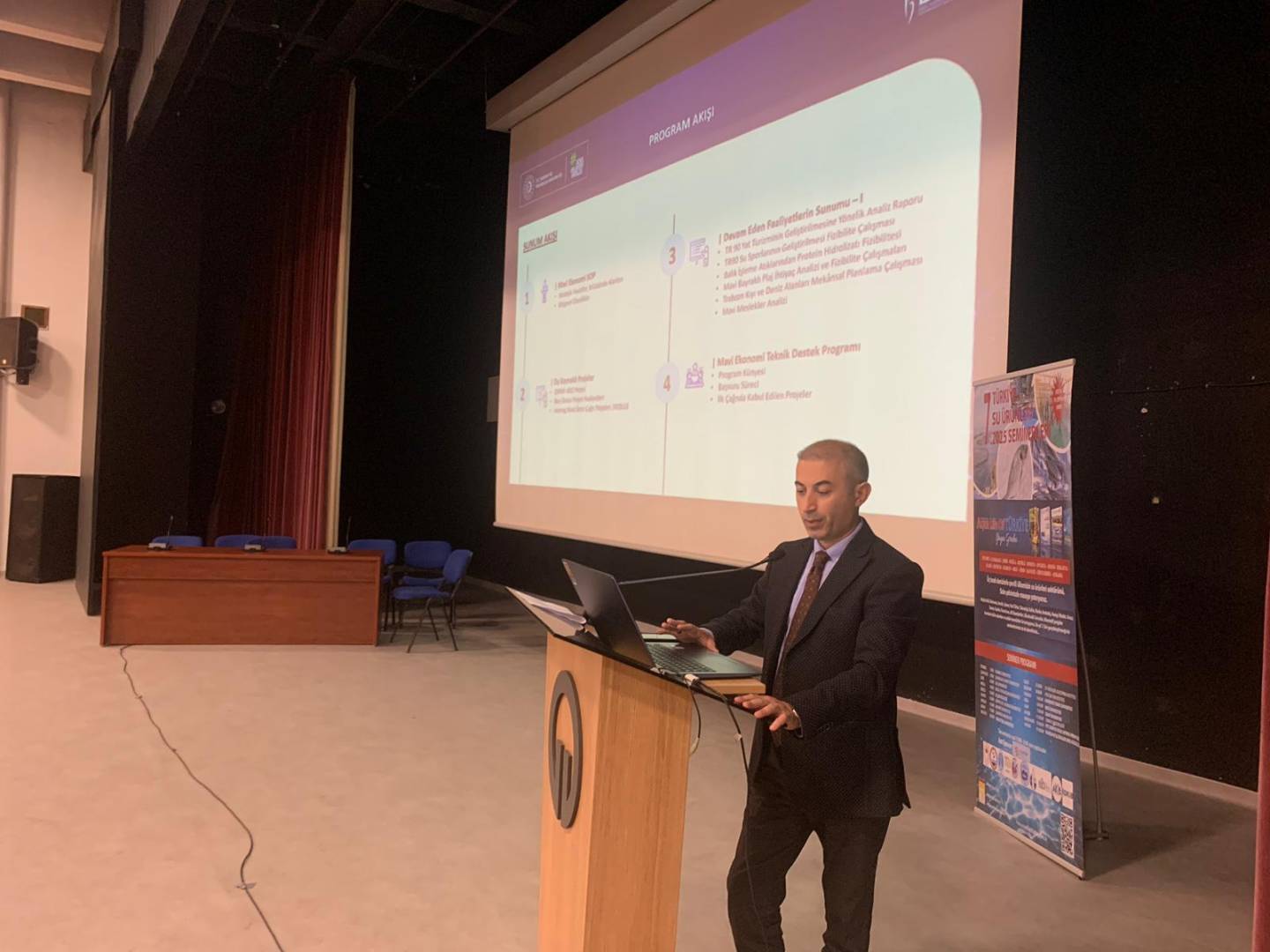 Açılış konuşmasını Aqua Life of Türkiye’den Kemal Cem Pülten yaptı. Ardından KTÜ Sürmene Deniz Bilimleri Fakültesi Dekanı Prof. Dr. Ali Muzaffer Feyzioğlu konuşma yaptı. Etkinlikte Trabzon Tarım ve Orman İl Müdürü İsa Kaplan, su verimliliği üzerine bilgiler paylaştı ve öğrencilerin sorularına büyük bir içtenlikle cevaplar verdi. Trabzon Su Ürünleri Araştırma Enstitüsü Teknik Koordinatörü Sebahattin Kutlu, enstitüyü tanıtarak yürüttükleri projelerden ve araştırmalardan bahsetti. Balıkçılık Teknolojisi Mühendisliği Bölümü Öğretim Üyesi Prof. Dr. İlhan Altınok, balıklarda kullanılan aşı çalışmaları hakkında sunum yaptı. Trabzon SUR-KOOP’tan Ahmet Mutlu ise kooperatifin faaliyetlerininden bahsetti. DOKA Kalkınma Ajansından Salih Şahin başvuru yapılabilecek projelerden ve yapılması planlanan çalışmalardan bahsetti. Programın son konuşmasını PCS Elektronik’ten Mehmet Efe yaptı. Ürettikleri ürünlerden bahsederek, su ürünleri sektöründe teknolojik gelişmelerin ve dijitalleşmenin önemini vurguladı.