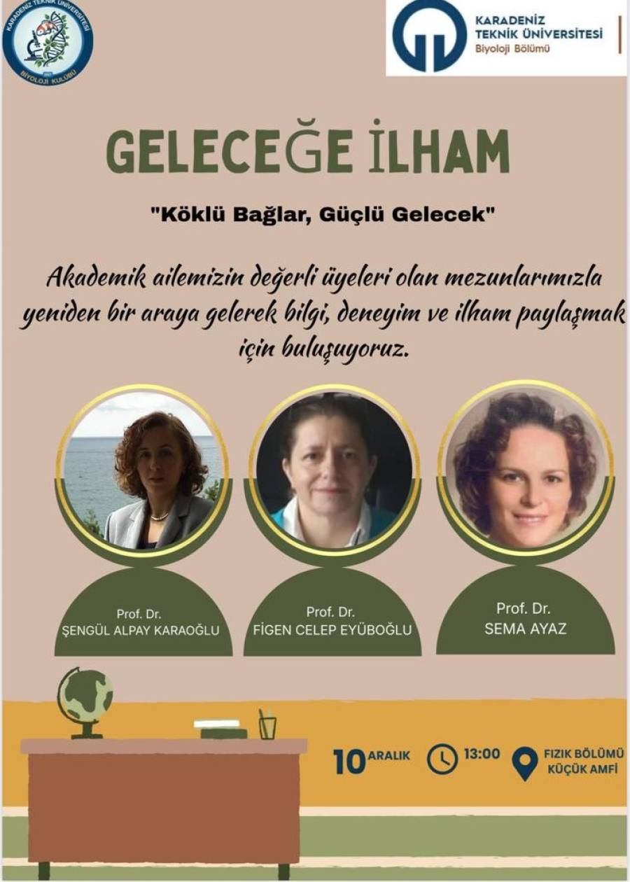 Geleceğe İlham etkinliği 10.12.2025 tarihinde Fizik Bölümü Küçük Amfide düzenlenecek olup saat 13:00' te başlayacaktır. Tüm öğrencilerimiz etkinliğe davetlidir.