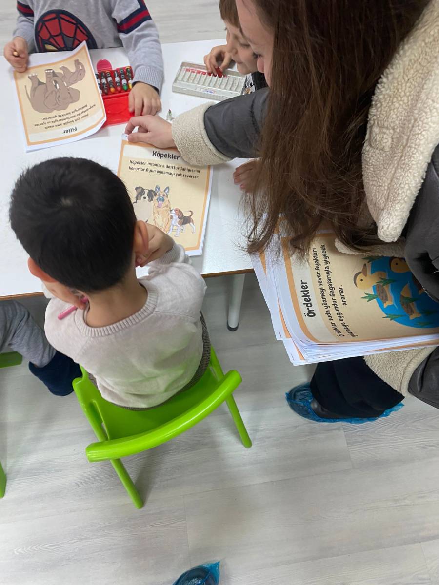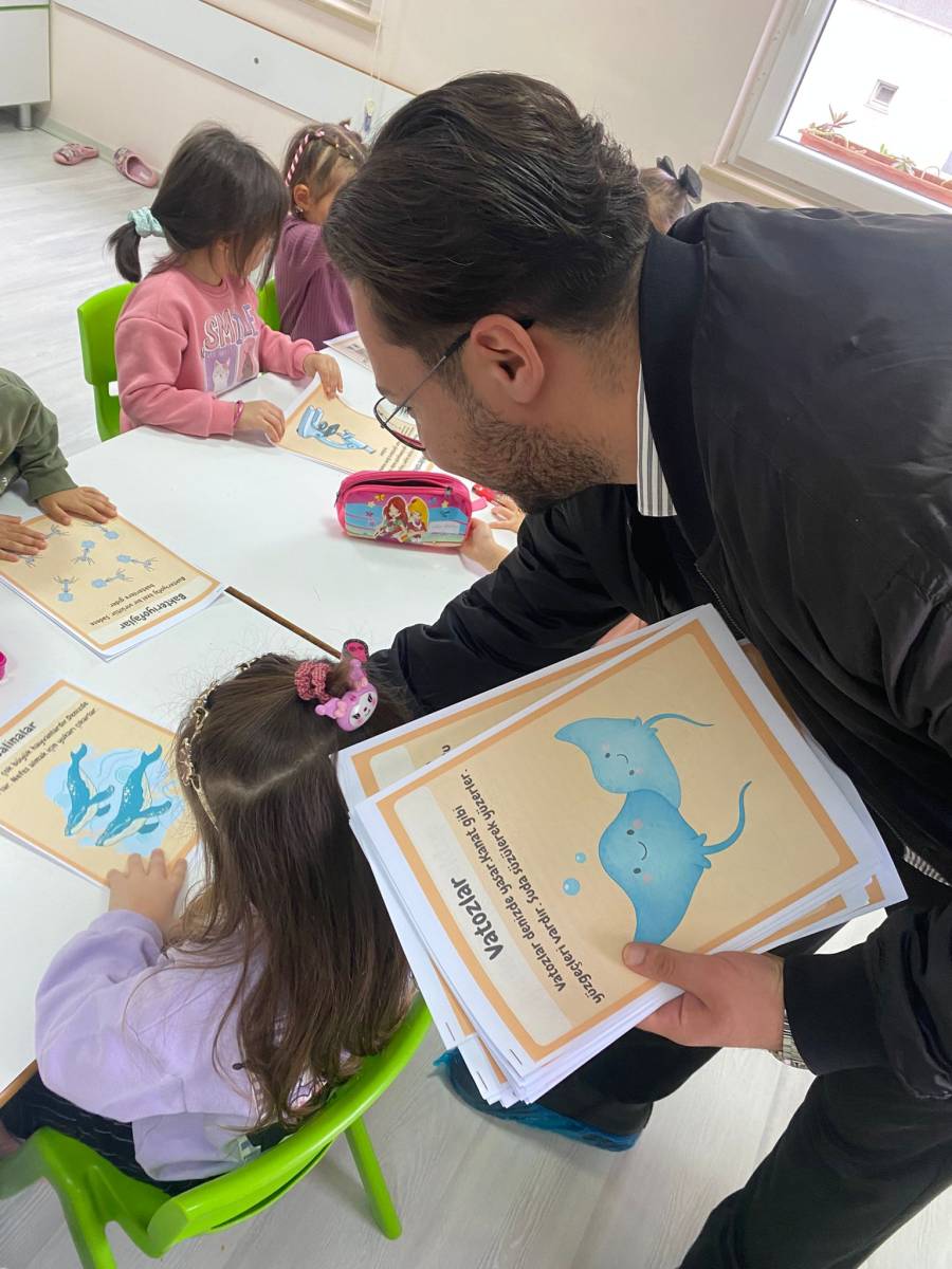 Kaan Dinler Anaokulu’na gerçekleştirilen ziyaret sırasında, e-kitaptan oluşturulan çıktılar çocuklara dağıtılmış; hayvanlar, bitkiler, bakteriler ve diğer biyolojik unsurlara ait görseller eşliğinde öğrencilerle birlikte boyama etkinliği yapılmıştır. Etkinlik süresince çocuklara eğitici ve eğlenceli bir öğrenme ortamı sunulmuştur.