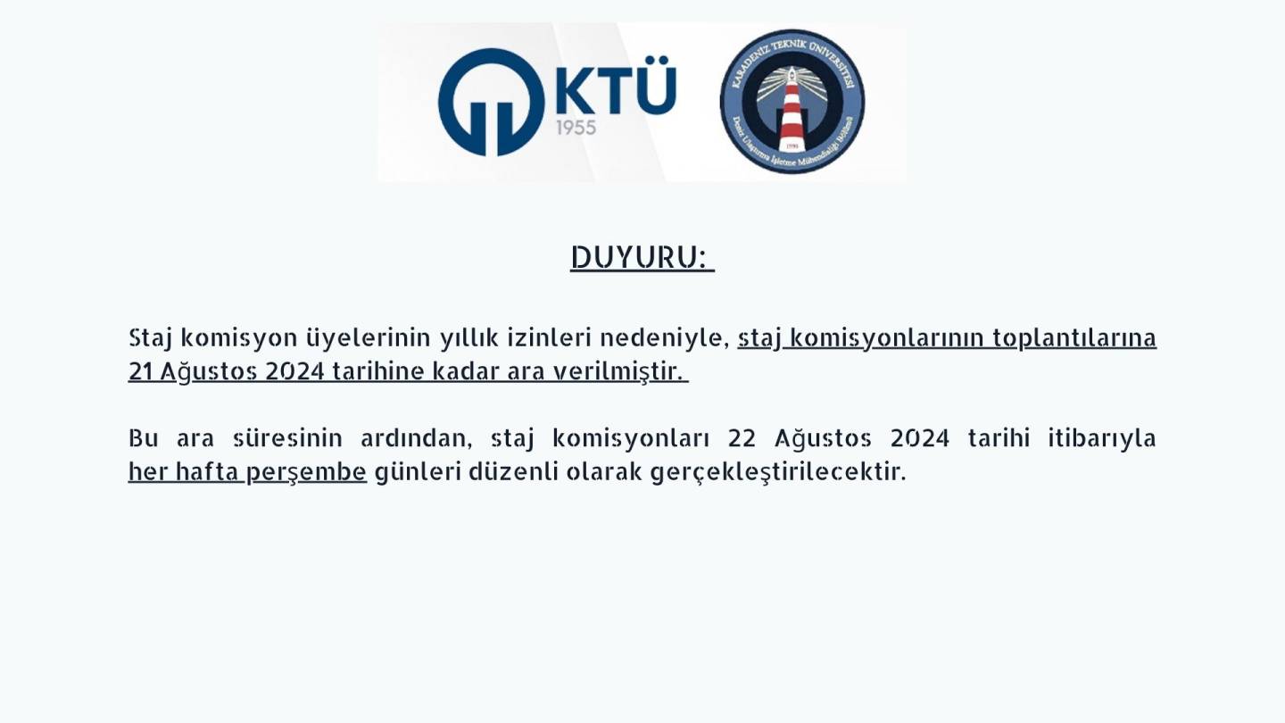 2025-2026 Güz Yarıyılı Staj Defterleri Teslim ve Staj Komisyonu Tarihleri İlan Edilmiştir