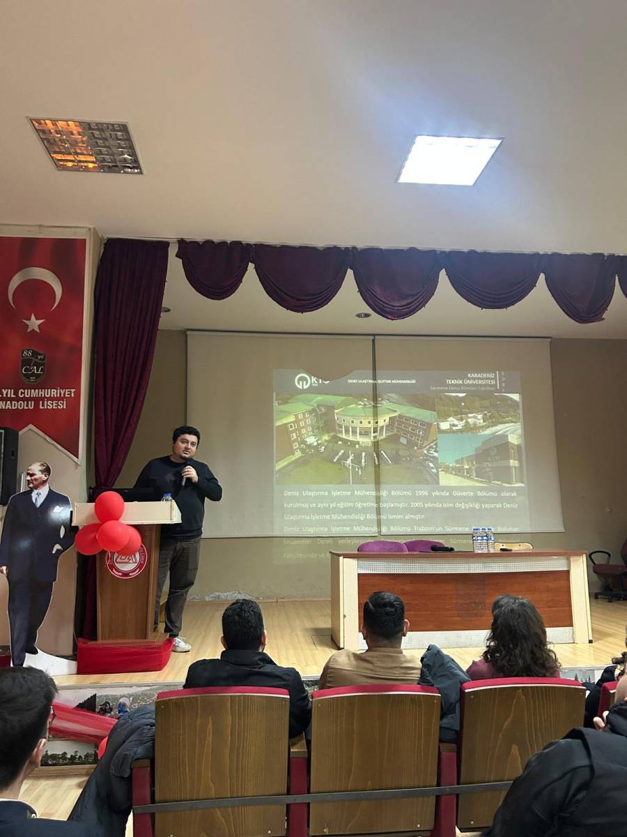 Programa, 88. Yıl Cumhuriyet Anadolu Lisesi’nin sayısal ve eşit ağırlık bölümlerinde öğrenim gören öğrenciler katıldı. Tanıtım sırasında Deniz Ulaştırma İşletme Mühendisliği Bölümü hakkında bilgiler verilerek bölümün eğitim süreci, mezuniyet sonrası çalışma alanları ve denizcilik mesleği öğrencilere anlatıldı.