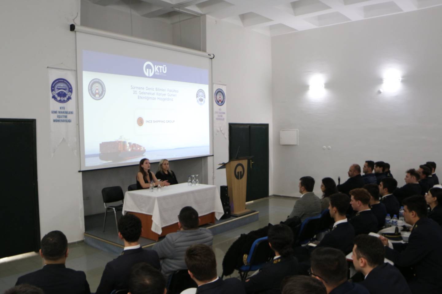 Kariyer Günlerimizin bu oturumunda, İnce Denizcilik İnsan Kaynakları Danışmanı Candan Arslan ile Asfalindo Surya Pratama firmasını temsilen Şeyma Ayaz öğrencilerimizle bir araya geldi. Gerçekleştirilen sunumlarda, denizcilik sektöründe insan kaynakları yönetimi, uluslararası çalışma ortamları ve kariyer planlamasına ilişkin önemli paylaşımlarda bulunuldu.