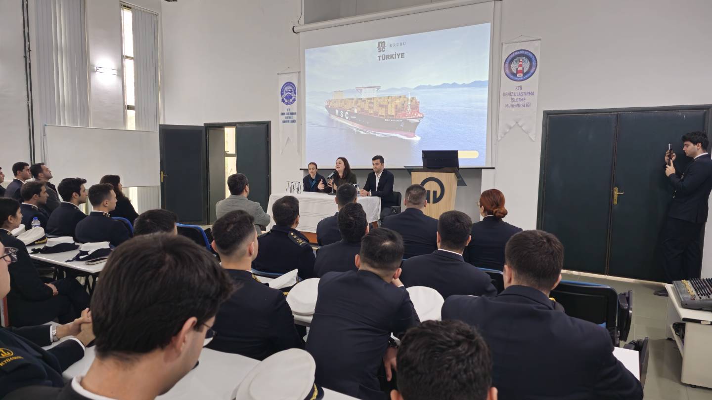 Ditaş Denizcilik Personel Enspektörü Serkan Mimir katılım sağladı. Gerçekleştirilen sunumda, firmanın filosu tanıtılarak işe alım süreçlerinde aranan kriterler aktarıldı