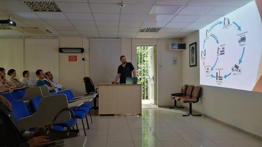 Sağlıkta Kalite Standartları (SKS) kapsamında Fakültemizde yürütülmekte olan hizmet içi eğitim faaliyetlerinde Çevre Mühendisi Mustafa Kemal AKBULUT tarafından akademik personele yönelik “Atık Ayrışımı ve Tehlikeli Maddelerin Bertarafı” konulu eğitim verilmiştir.