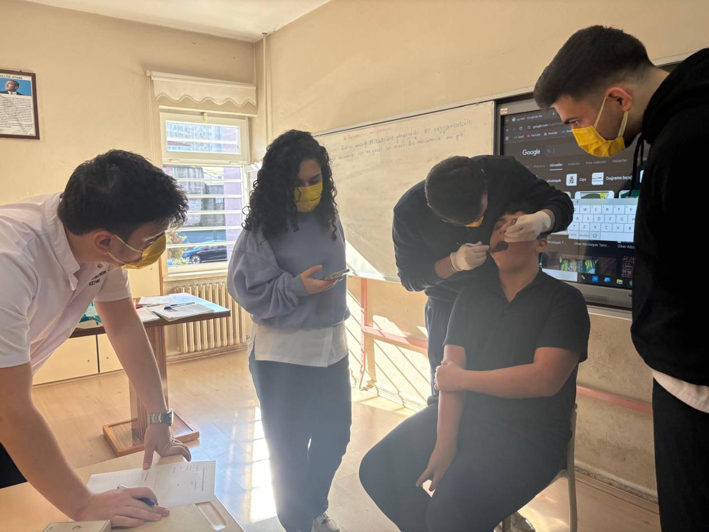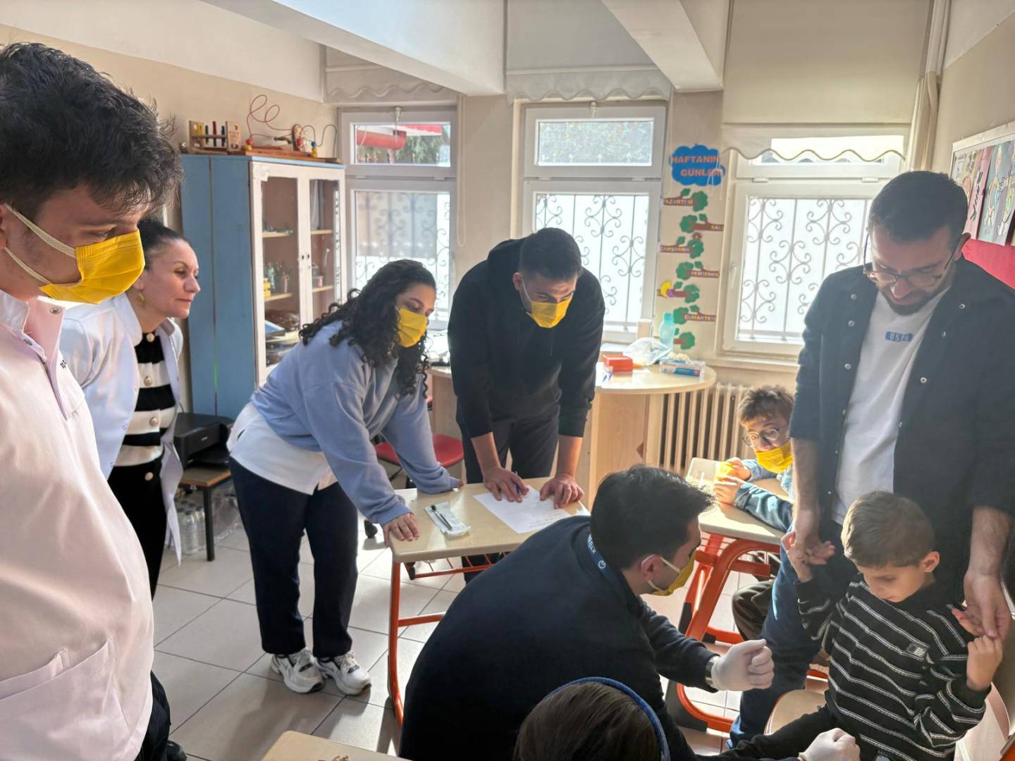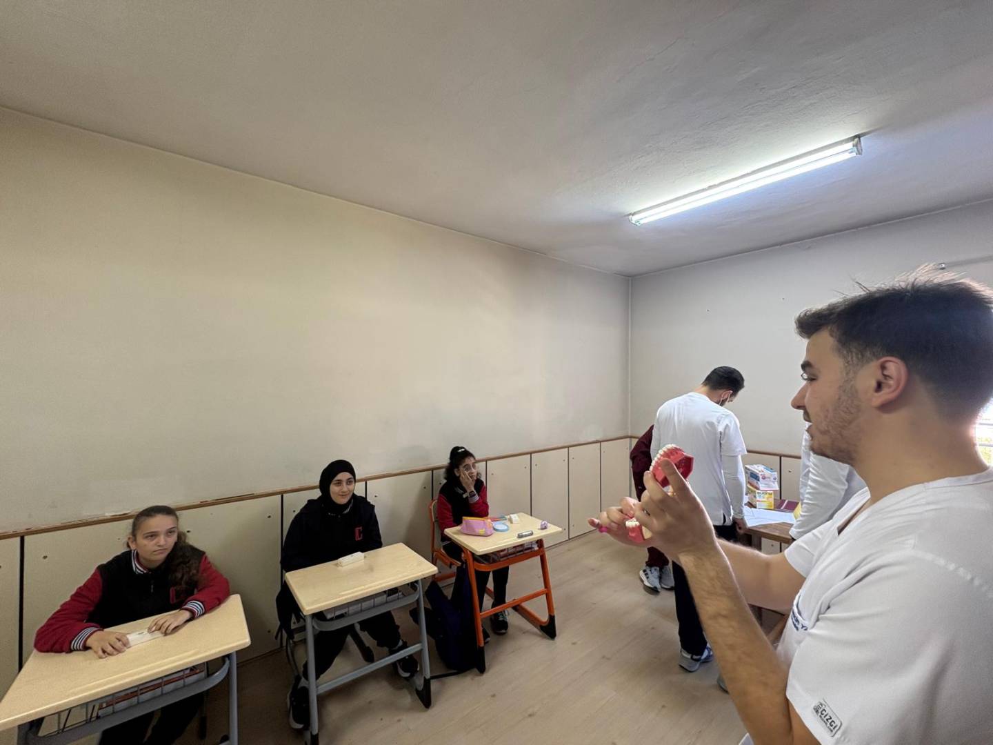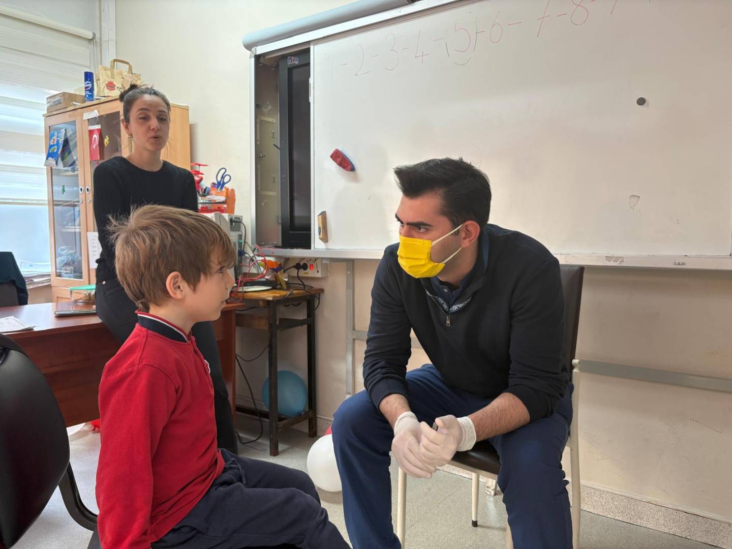 Fakültemiz ile Trabzon Kent Konseyi arasında imzalanan iş birliği protokolü kapsamında yürütülen sosyal sorumluluk faaliyetleri çerçevesinde, bu kez Çamlık işitme Engelliler İlkokulu-Ortaokulu-Özel Eğitim Meslek Lisesi Okulu ziyaret edilerek ağız ve diş sağlığı taraması gerçekleştirildi. Etkinlikte özel gereksinimli öğrencilerin ağız ve diş sağlıkları değerlendirildi, koruyucu ağız ve diş sağlığı konusunda bilgilendirme yapıldı. Öğrencilere doğru diş fırçalama teknikleri gösterilerek, bireysel hijyen alışkanlıklarını destekleyici materyaller dağıtıldı. Fakültemiz öğretim elemanları ve öğrencilerinin gönüllü katılımıyla gerçekleşen etkinlikte, toplumun farklı kesimlerine ulaşarak ağız ve diş sağlığı bilincini artırma hedefi bir kez daha vurgulandı.