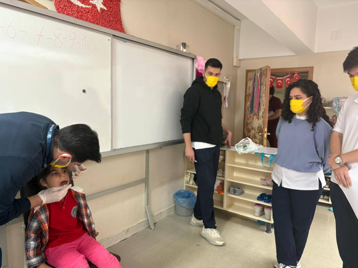Gülümseyen Fidanlar projesi kapsamında ağız-diş sağlığı eğitimi, muayene ve fidan dikimi yapıldı.