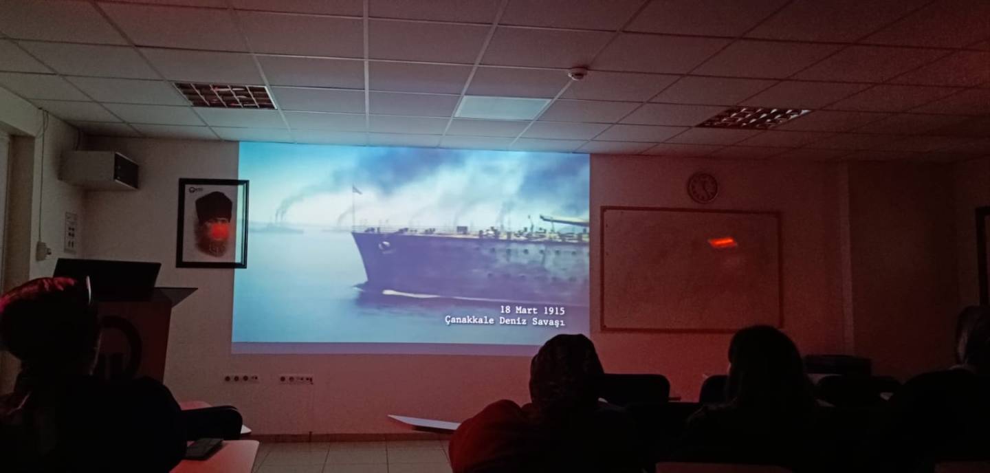 "18 Mart Şehitleri Anma Günü ve Çanakkale Deniz Zaferi" etkinlikleri kapsamında Fakültemiz sesli anons sistemi ve bilgilendirme ekranlarında gün boyunca paylaşımlar yapılmış olup ayrıca personele yönelik “Çanakkale 1915” filminin gösterimi yapılmıştır.