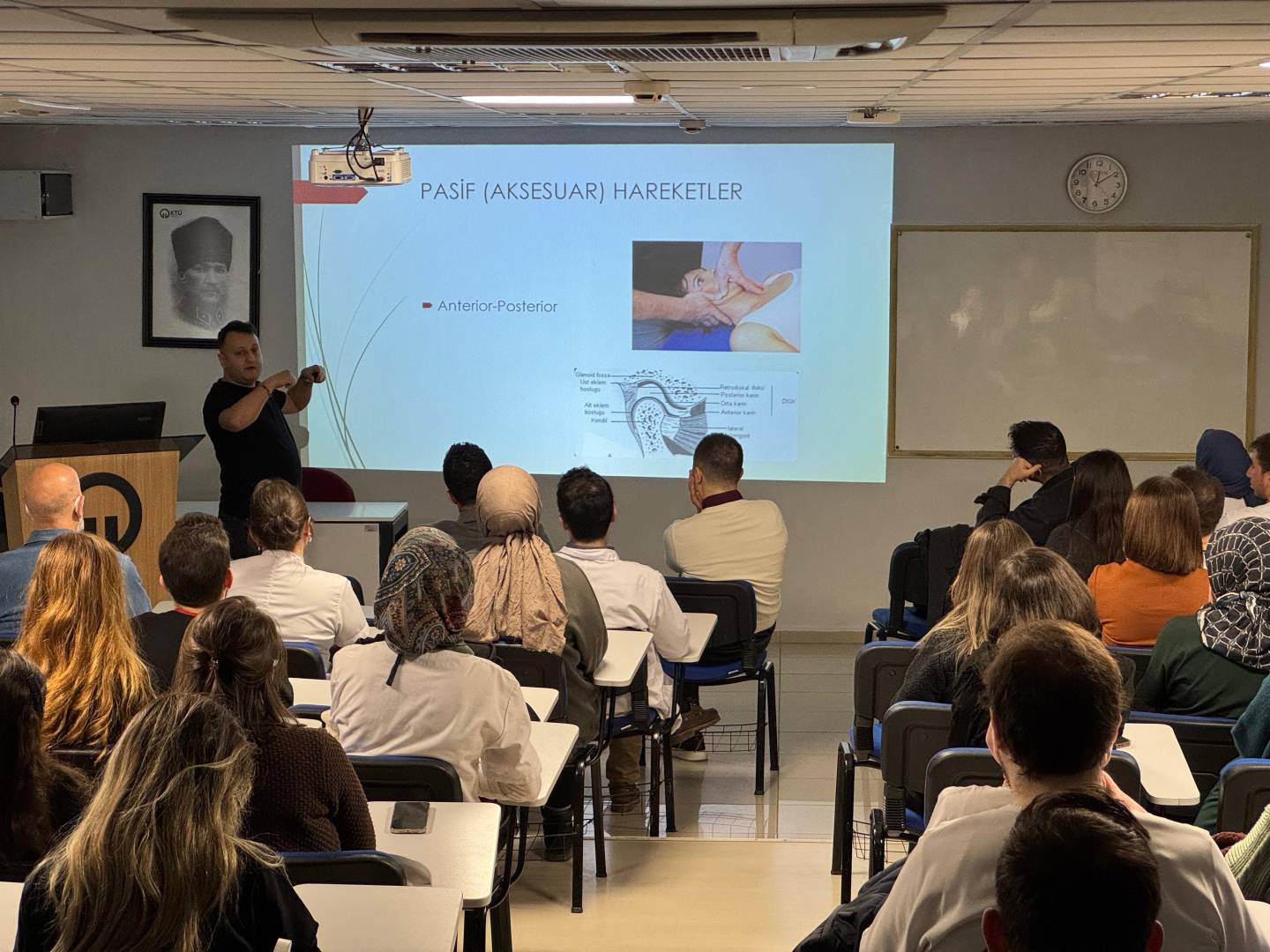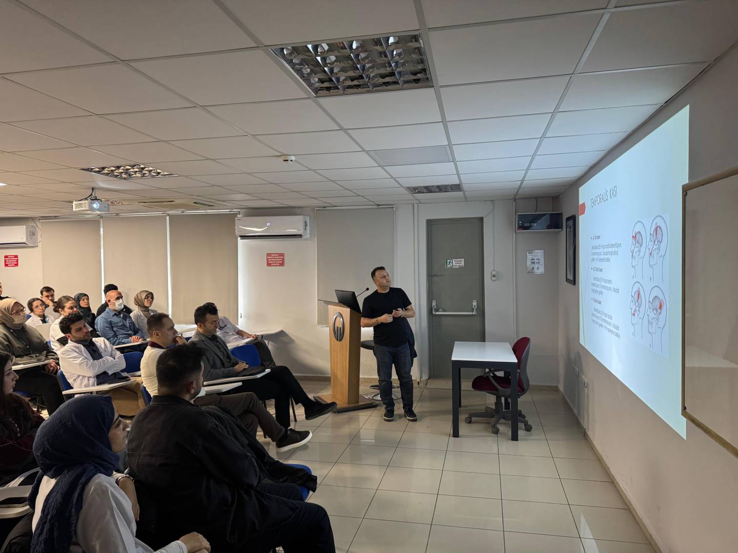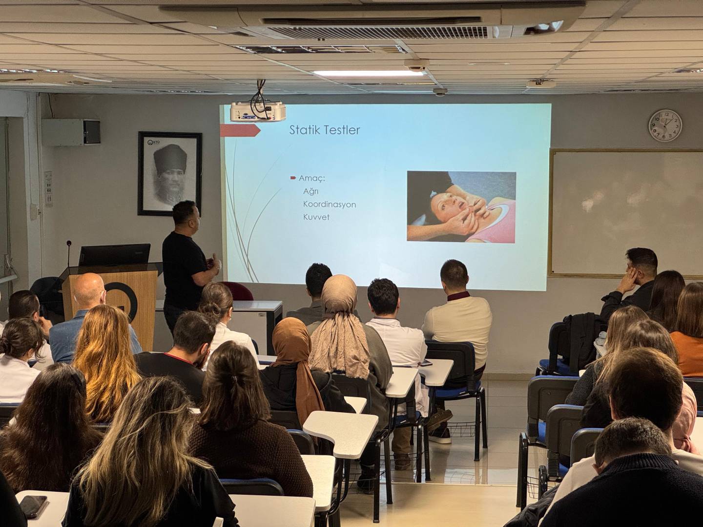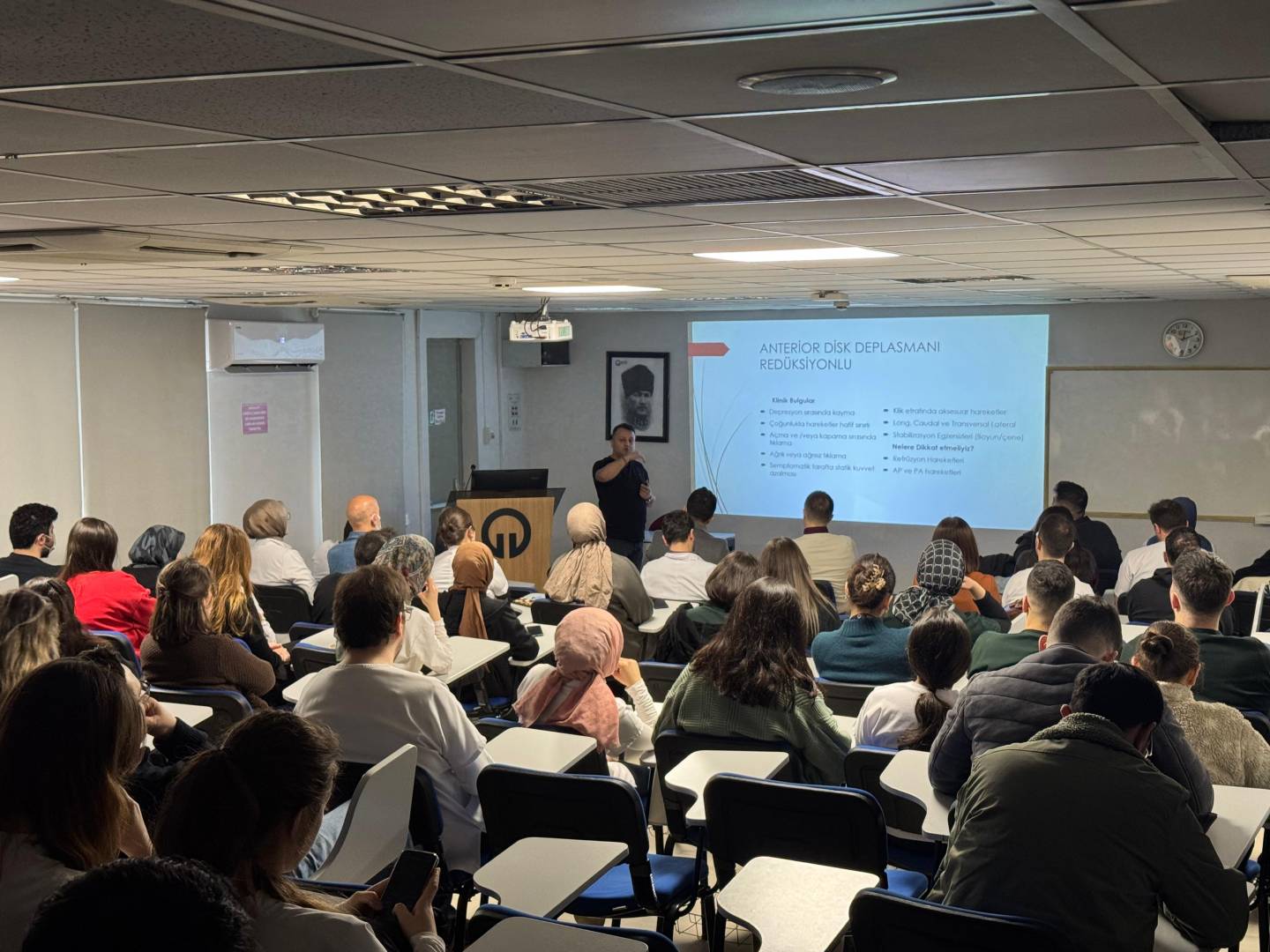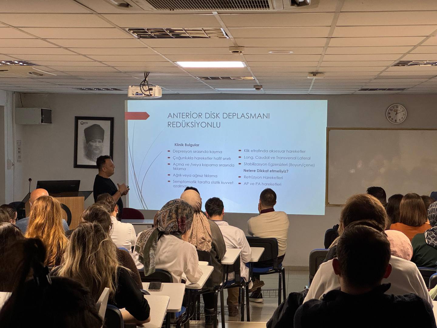 Sunumda; temporomandibular eklem rahatsızlıkları, kraniofasiyal ağrı mekanizmaları ve bu durumların rehabilitasyon süreçleri ele alınmış, teorik bilgilerin klinik uygulamalarla ilişkilendirilmesine yönelik önemli paylaşımlarda bulunulmuştur.