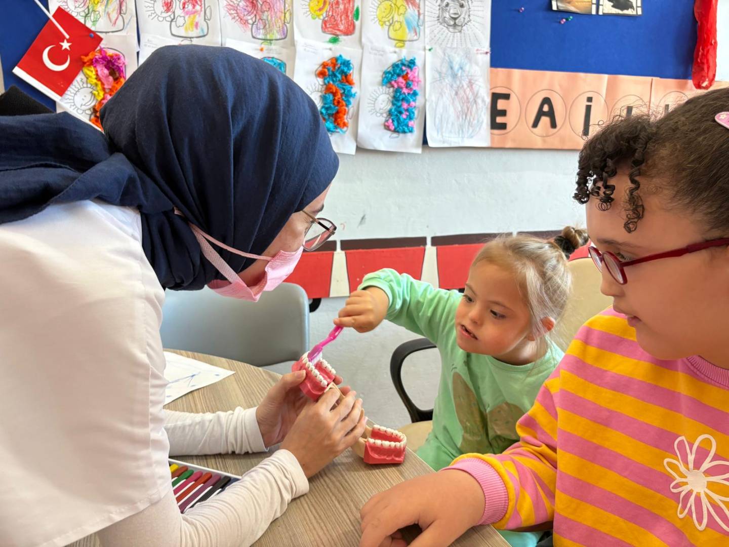 Fakültemiz ile Trabzon Kent Konseyi arasında imzalanan iş birliği protokolü kapsamında yürütülen sosyal sorumluluk faaliyetleri çerçevesinde, bu kez Erdoğdu İş Eğitim Uygulama Okulu ziyaret edilerek ağız ve diş sağlığı taraması gerçekleştirildi. Etkinlikte özel gereksinimli öğrencilerin ağız ve diş sağlıkları değerlendirildi, koruyucu ağız ve diş sağlığı konusunda bilgilendirme yapıldı. Öğrencilere doğru diş fırçalama teknikleri gösterilerek, bireysel hijyen alışkanlıklarını destekleyici materyaller dağıtıldı. Fakültemiz öğretim elemanları ve öğrencilerinin gönüllü katılımıyla gerçekleşen etkinlikte, toplumun farklı kesimlerine ulaşarak ağız ve diş sağlığı bilincini artırma hedefi bir kez daha vurgulandı. Fakültemiz, önümüzdeki dönemde de benzer sosyal sorumluluk faaliyetlerini sürdürerek, toplumun her kesiminde ağız ve diş sağlığı farkındalığını güçlendirmeyi amaçlamaktadır.