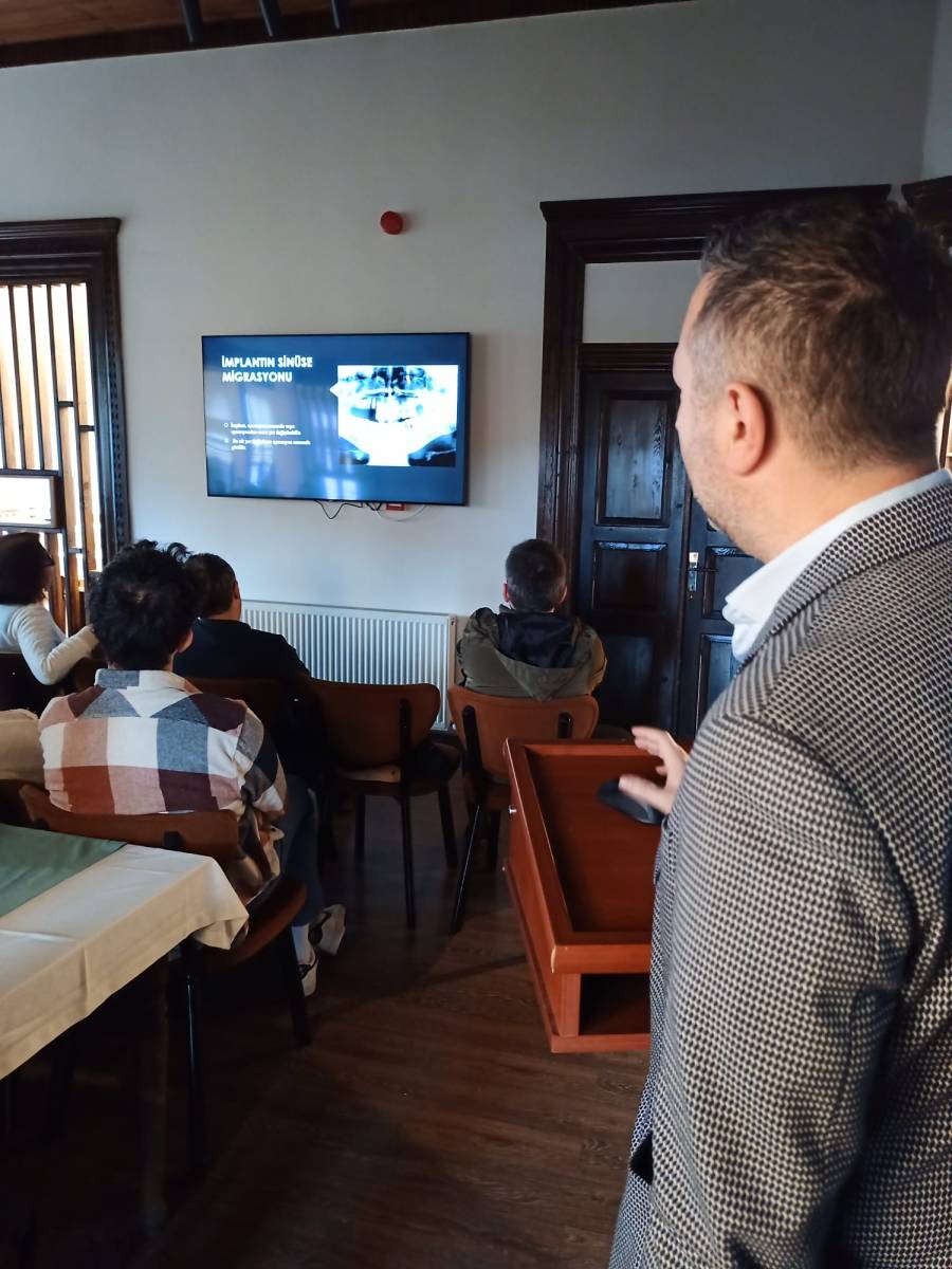 Toplantıda, Fakültemiz Klinik Bilimler Bölümü Ağız, Diş ve Çene Cerrahisi Anabilim Dalı öğretim üyesi Prof. Dr. Cem ÜNGÖR “İmplant Komplikasyonları”, Endodonti Anabilim Dalı Başkanı Doç. Dr. Davut ÇELİK “Endodontik Tedavide Prosedürel Aksaklıklar: Risk Faktörleri ve Kanıta Dayalı Yönetim” ve Protetik Diş Tedavisi Anabilim Dalı öğretim üyesi Dr. Öğr. Üyesi Nesim ŞAHİN ise “İmplant Üstü Protezler” başlıklı sunumlarıyla yer aldı.