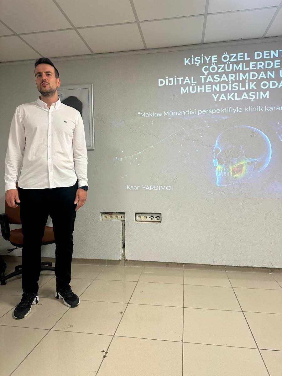Fakültemiz Dönem IV öğrencileri, DIS 485 kodlu Pedodonti dersi kapsamında yürütülen etkinlik çerçevesinde sektör temsilcisi ile bir araya geldi. Bu kapsamda, Tinus Technologies Kurucu & CEO’su Kaan Yardımcı’nın katılımıyla “Kişiye Özel Dental Çözümlerde Dijital Tasarımdan Üretime Mühendislik Odaklı Yaklaşım” başlıklı seminer gerçekleştirildi.