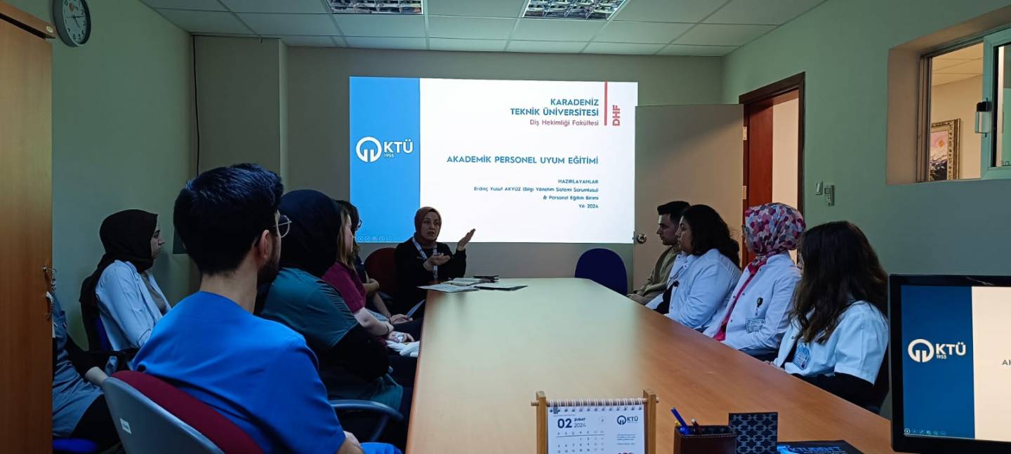 2023 yılı 2. Dönem Diş Hekimliği Uzmanlık Eğitimi Giriş Sınavı (DUS) ile ataması yapılan ve göreve başlayan 13 araştırma görevlisine Fakültemizde yürütülen eğitim, sağlık hizmetleri, idari iş ve işlemler, uzmanlık eğitimi, Hastane Bilgi Yönetim Sistemi (HBYS), e-reçete ve Üniversitemiz dijital hizmetleri (e-posta/EBYS) kullanımı hakkında genel bilgilendirme yapıldı. Göreve başlayan ve ailemize katılan asistanlarımızın başarılı bir eğitim ve meslek hayatı geçirmelerini diliyoruz.