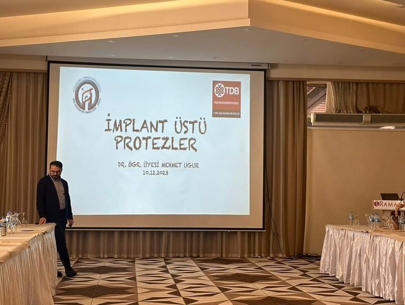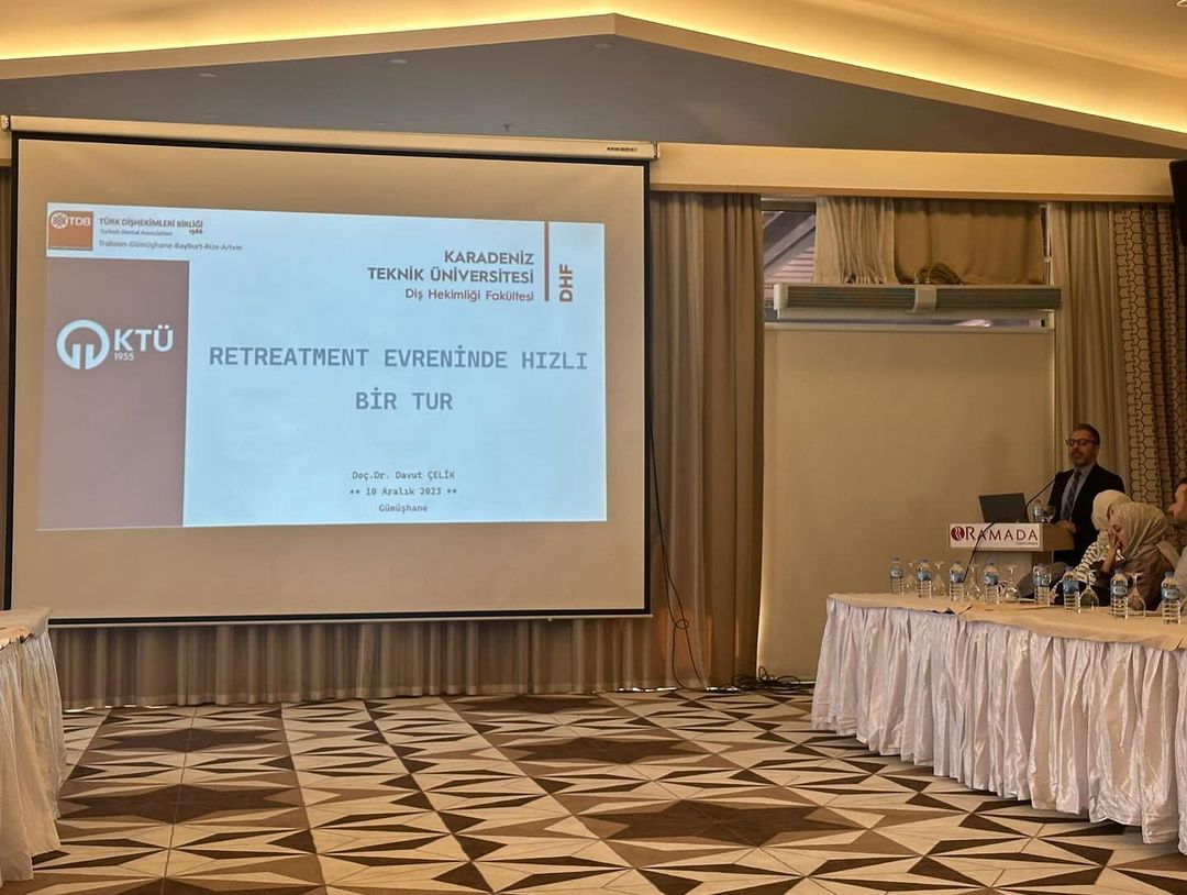 Trabzon Diş Hekimleri Odası’nın 10 Aralık 2023 tarihinde Gümüşhane’de düzenlemiş olduğu programda diş hekimlerine yönelik Fakültemiz Endodonti Anabilim Dalı öğretim üyelerinden Doç. Dr. Davut ÇELİK tarafından “Retreatment Evreninde Hızlı Bir Tur” ve Protetik Diş Tedavisi Anabilim Dalı öğretim üyelerinden Dr. Öğr. Üyesi Mehmet UĞUR tarafından “İmplantüstü Protezler” başlıklı sunum yapılmıştır.