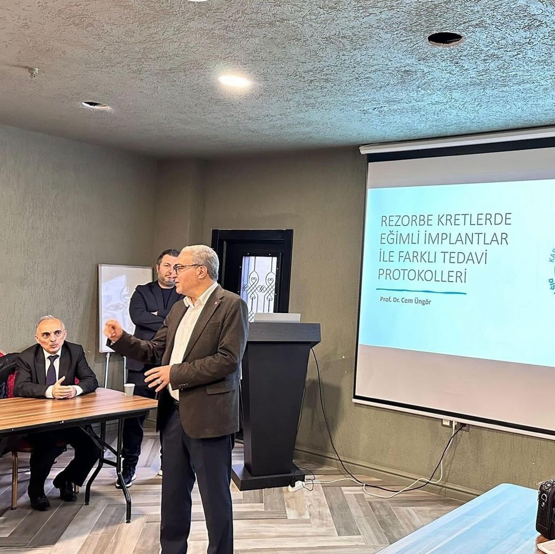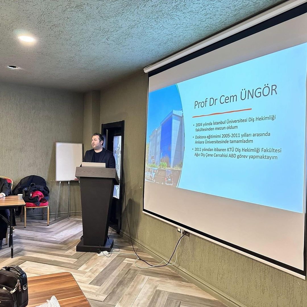 Trabzon Diş Hekimleri Odası’nın 24 Aralık 2023 tarihinde Bayburt’ta düzenlemiş olduğu programda diş hekimlerine yönelik Fakültemiz Ağız , Diş ve Çene Cerrahisi Anabilim Dalı öğretim üyesi Prof. Dr. Cem ÜNGÖR tarafından “Rezorbe Kretlerde Eğimli İpmlantlar İle Farklı Tedavi Protokolleri” başlıklı sunum yapılmıştır.
