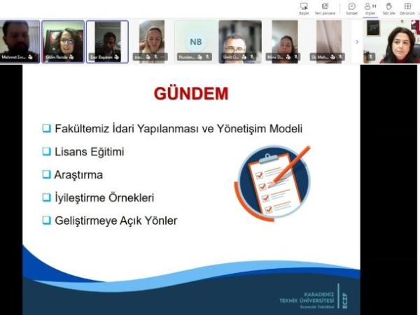 29 Eylül 2021 tarihinde fakültemiz sınıf temsilcileri ile Zoom platformu aracılığıyla toplantı yapıldı. Toplantıya Fakültemiz Dekanı Prof. Dr. Ufuk ÖZGEN, Dekan yardımcısı Doç. Dr. İnci Selin DOĞAN, Dekan yardımcısı Dr. Öğr. Üyesi Sevda TÜRK, Fakülte Sekreteri Handan Nuran HACIAHMETOĞLU ile her sınıfın öğrenci temsilcisi katıldı. Öğrenciler kendi temsil ettikleri sınıf arkadaşlarından aldıkları görüş ve önerileri aktardı ve eğitim-öğretimin geliştirilmesi için karşılıklı görüş alışverişinde bulunuldu.