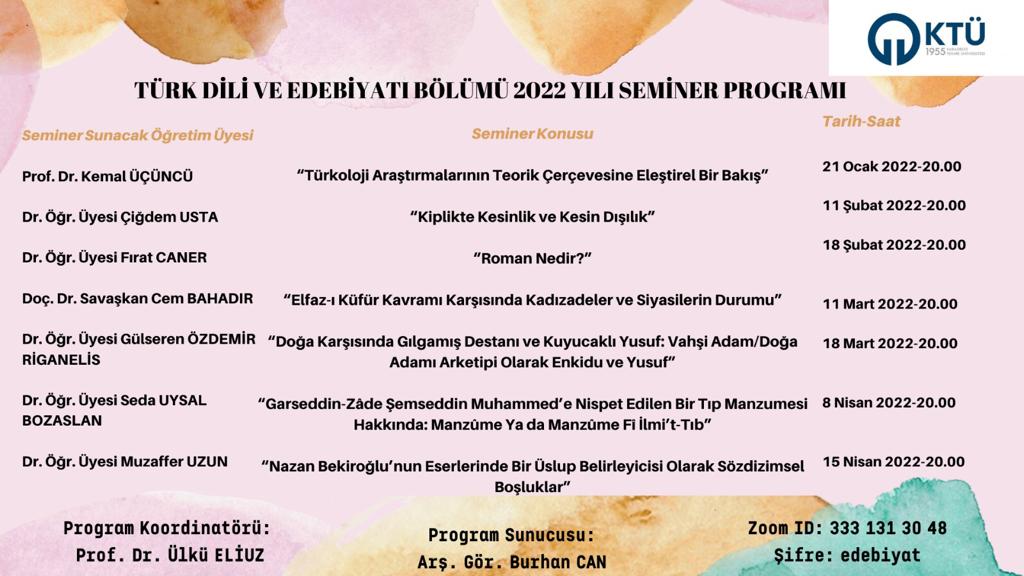 Türk Dili ve Edebiyatı Bölümü 2022 Seminer Programı