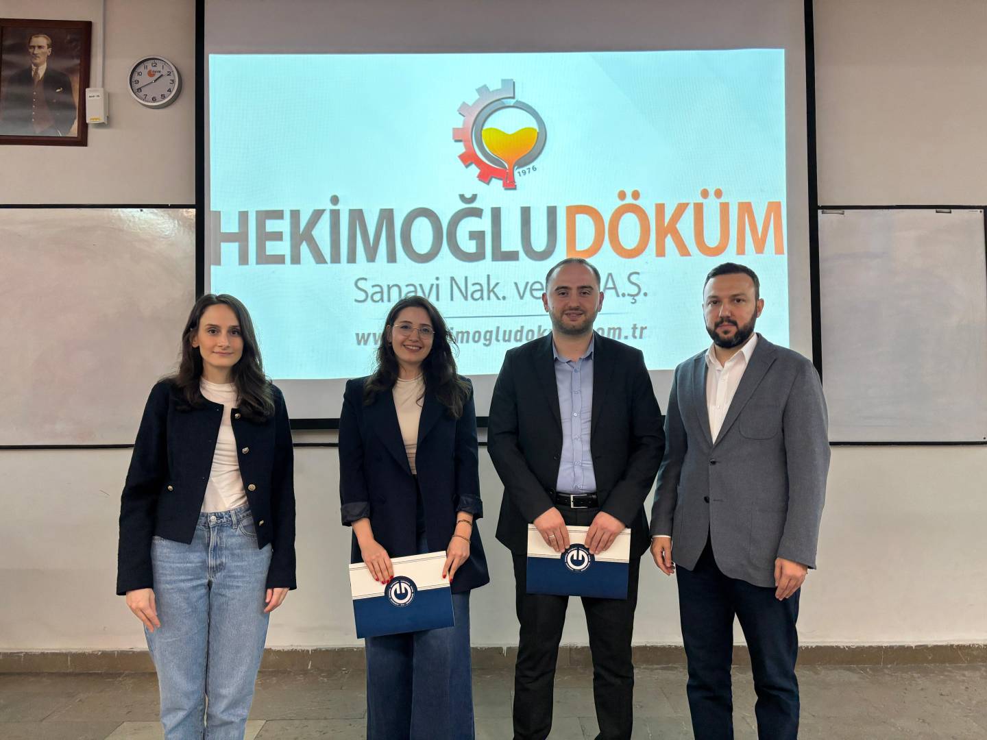 Etkinlik kapsamında, Hekimoğlu Döküm’de görev yapan endüstri mühendisleri Murathan Çıkrıkçı ve Ayşin Bulduk, öğrencilerle bir araya gelerek hem şirketlerini tanıttılar hem de kariyer yolculukları boyunca edindikleri deneyimleri samimi bir sohbet ortamında paylaştılar.