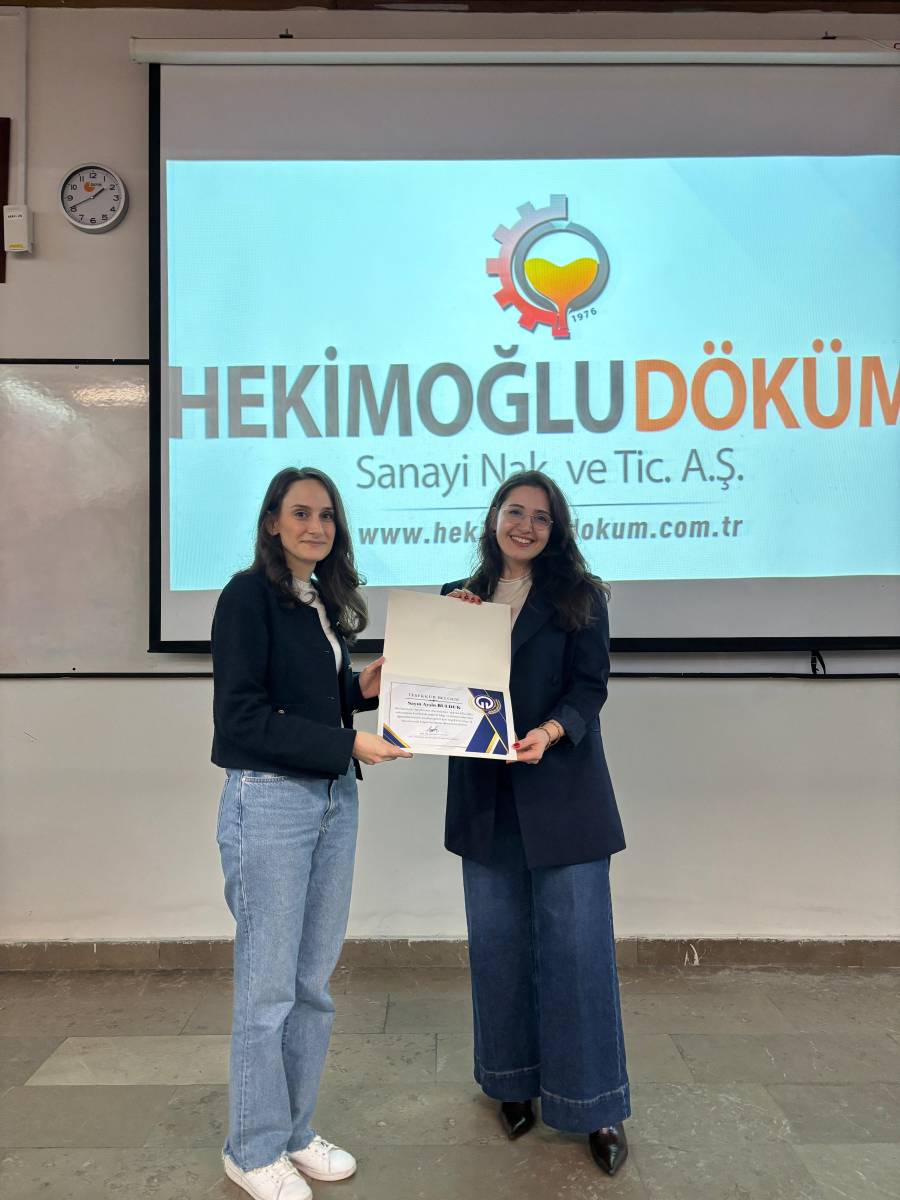Endüstri Mühendisliği Bölümü olarak, değerli katkılarından dolayı Hekimoğlu Döküm’de görev yapan endüstri mühendisleri Murathan Çıkrıkçı ve Ayşin Bulduk’a teşekkür eder, öğrencilerimize ilham veren paylaşımlarının gelecekteki iş birliği ve deneyim aktarımına zemin oluşturmasını dileriz.
