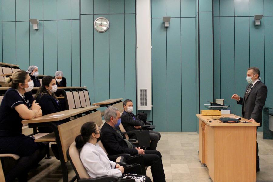 Hemşireler, sağlık hizmetleri yürüten kurumlarda vazgeçilmez ve en önemli insan kaynağı grubudur. Hemşireler, görev tanımlarındaki ağır ve ciddi pek çok görevi yerine getirmenin yanında koordinatörlük, arabuluculuk gibi rolleri de sürekli üstlenen çalışanlardır. Adeta mesailerini sorun çözme konusunda sınırsız özveri ve yılmaz bir gayretle donatırlar. Hastanemizde çalışan hemşirelerimiz, pandemi döneminde daha yoğun ve stresli bir çalışma sürdürüyorlar. Buna rağmen yaşanan pek çok sorunu bünyelerinde eritip kahramanca çalışıyorlar. Hemşirelerimizin sorunları, çözüm önerileri, işleyişteki aksaklıklar gibi pek çok konuda yapılan istişare toplantısı Başhekimimiz Prof. Dr. Celal TEKİNBAŞ başkanlığında düzenlendi. Başhekimimiz Prof. Dr. Celal TEKİNBAŞ, hemşirelerimize özverili çalışmaları için teşekkür etti ve hastanemizdeki yeni başlayan uygulamalardan, alınan yeni kararlardan bahsetti. Hastanemizde ivme kazanan olumlu hava bu toplantıda da hissedildi. Toplantıya Başhekim Yardımcılarımız Prof. Dr. Abdülkadir GÜNDÜZ, Doç. Dr. Emine CANYILMAZ, Doç. Dr. Selçuk ARSLAN, Başhemşiremiz Sevgi DANACI, Başhemşire Yardımcımız Mehtap ÖKSÜZ ve pek çok hemşire arkadaşımız katıldılar.