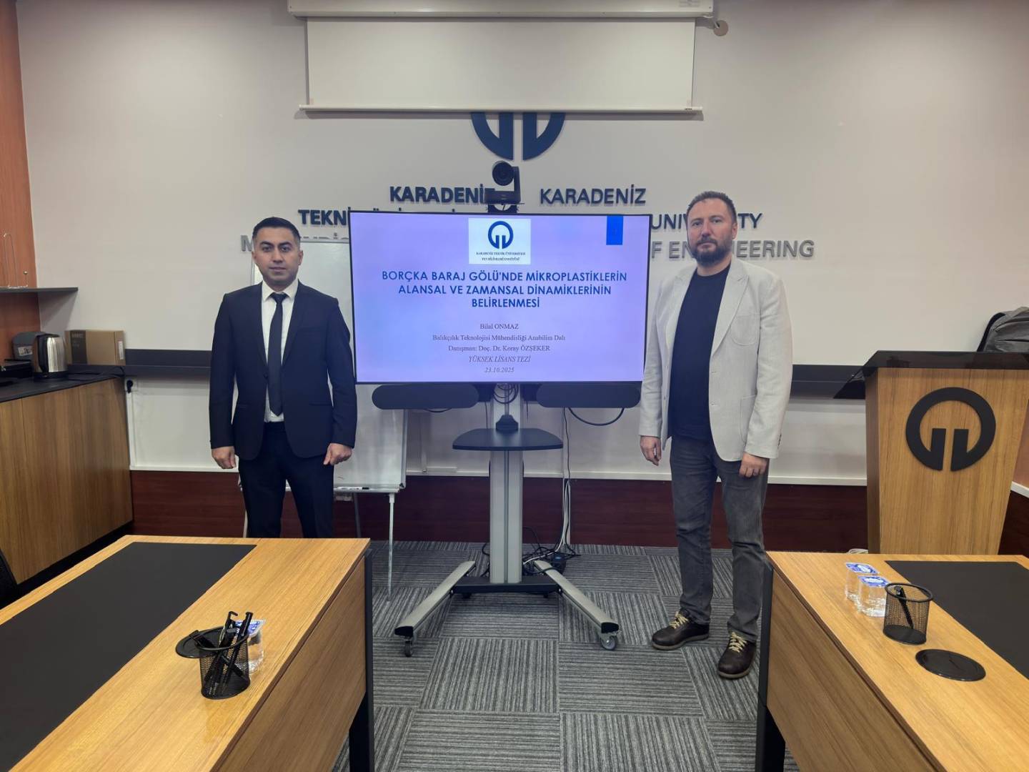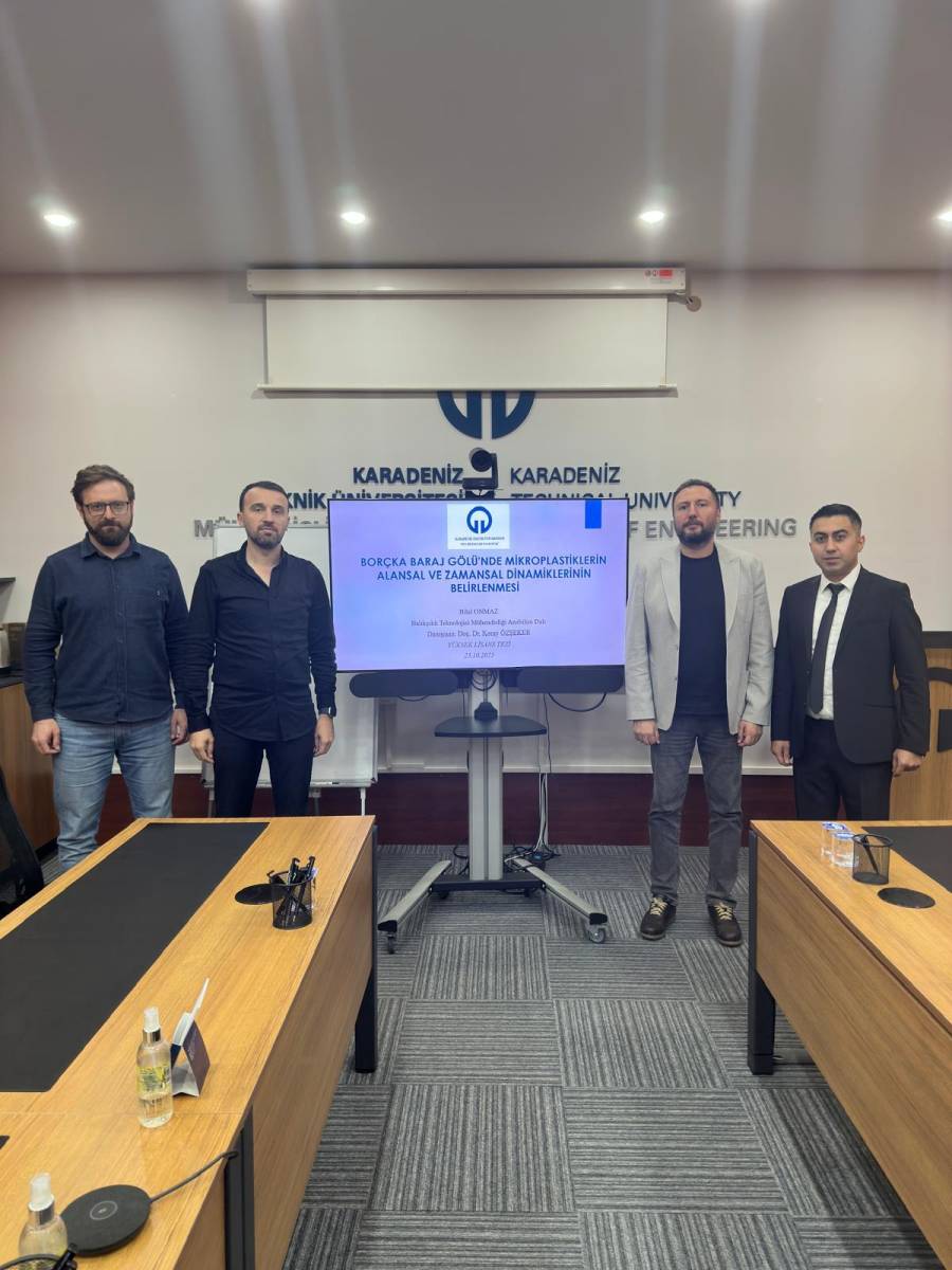 Anabilim dalımız Yüksek Lisans öğrencisi olan Bilal ONMAZ, Doç. Dr. Koray ÖZŞEKER danışmanlığında hazırlamış olduğu BORÇKA BARAJ GÖLÜNDEKİ MİKROPLASTİKLERİN ALANSAL VE ZAMANSAL DİNAMİKLERİNİN BELİRLENMESİ adlı yüksek lisans tezini 23 Ekim 2025 tarihinde, Doç. Dr. Koray ÖZŞEKER (Danışman) başkanlığındaki, Doç. Dr. Tanju MUTLU, (Recep Tayyip Erdoğan Üniversitesi) ve Doç. Dr. Yahya TERZİ (KTÜ)'den oluşan jüri önünde başarı ile savunarak "Balıkçılık Teknolojisi Yüksek Mühendisi" ünvanını almıştır.