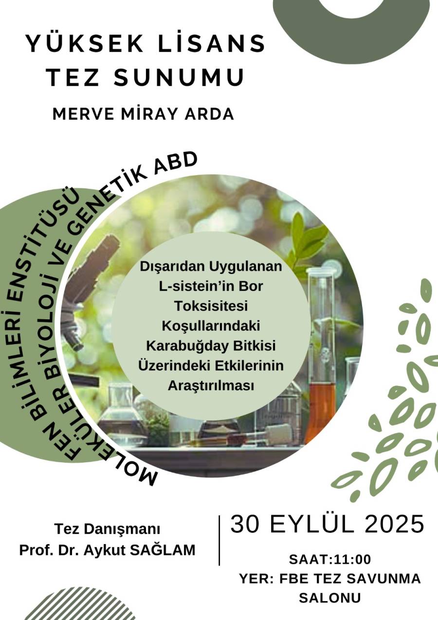 Konu "Dışarıdan Uygulanan L-Sistein’in Bor Toksisitesi Koşullarındaki Karabuğday Bitkisi Üzerindeki Etkilerinin Araştırılması"