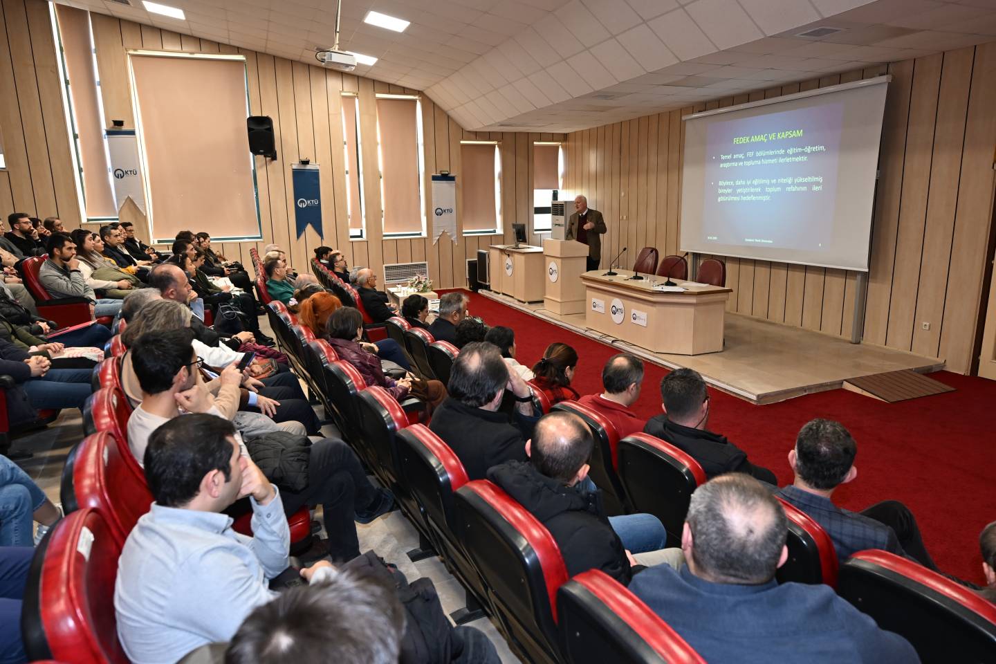 Prof. Dr. Kenan İNAN, FEDEK kurumu, değerlendirme süreçleri, öz değerlendirme raporu hazırlama ve akredite olan kuruluşlar gibi konu başlıkları çerçevesinde akreditasyon süreçlerinin inceliklerini dinleyicilere aktardı.