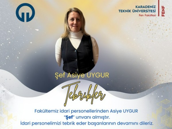 Fakültemiz idari personellerinden Asiye UYGUR "Şef" unvanı almıştır. İdari personelimizi tebrik eder başarılarının devamını dileriz.