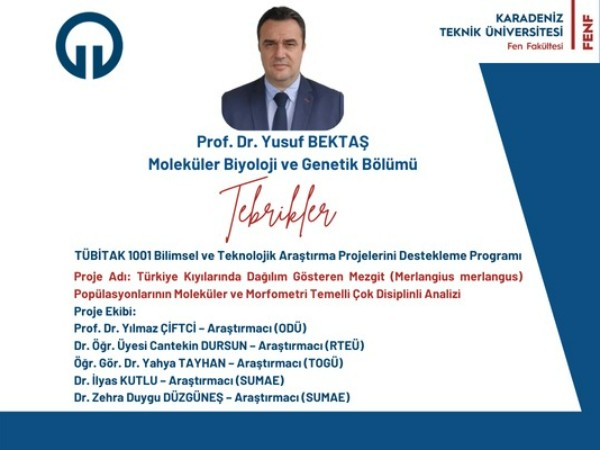 Prof. Dr. Yusuf BEKTAŞ'a TÜBİTAK 1001 Bilimsel ve Teknolojik Araştırma Projelerini Destekleme Programı kapsamında proje desteği